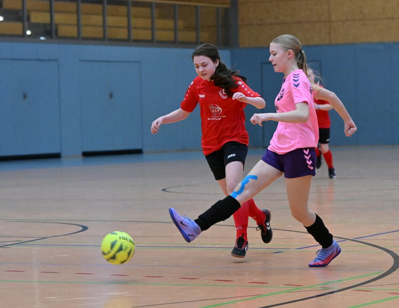 Am Sonntag fand in der Schönberger Palmberg-Halle der 1. DVAG-Cup für C-Juniorinnen statt. Unsere Mädchenmannschaft erwischte dabei gegen die SG Dynamo Schwerin einen Turnierstart nach Maß, denn nach der Schlusssirene stand ein 2:0-Sieg auf der Anzeigetafel. Wie schon gegen Dynamo erzielte Nele Slepan auch gegen Ahrensburg 2 Treffer. Diese reichten jedoch nicht für Punkte, weil der SCC Hagen Ahrensburg schnell ausgleichen konnte und am Ende durch 2 weitere Tore die Nase vorn hatte.