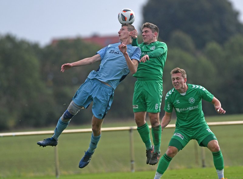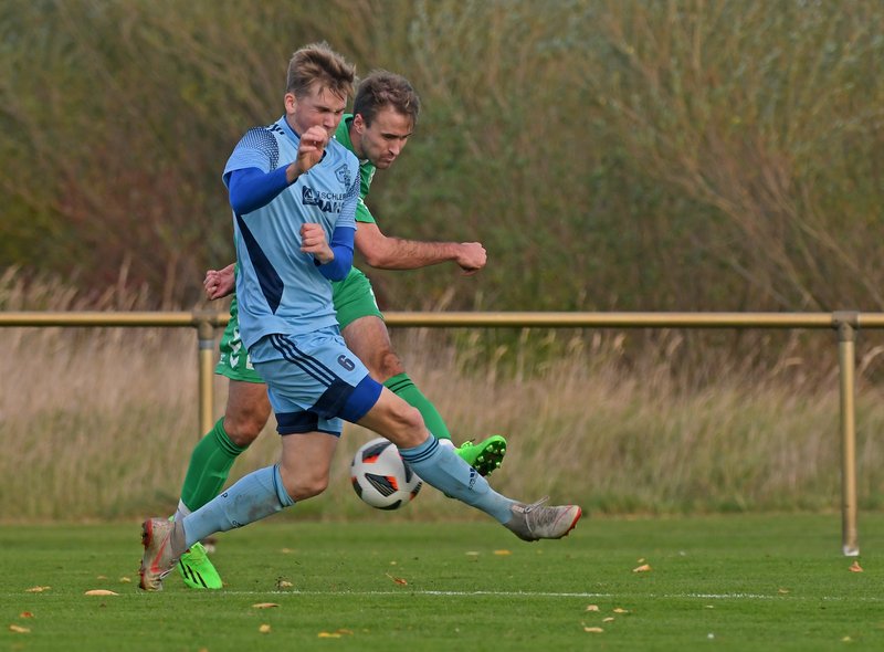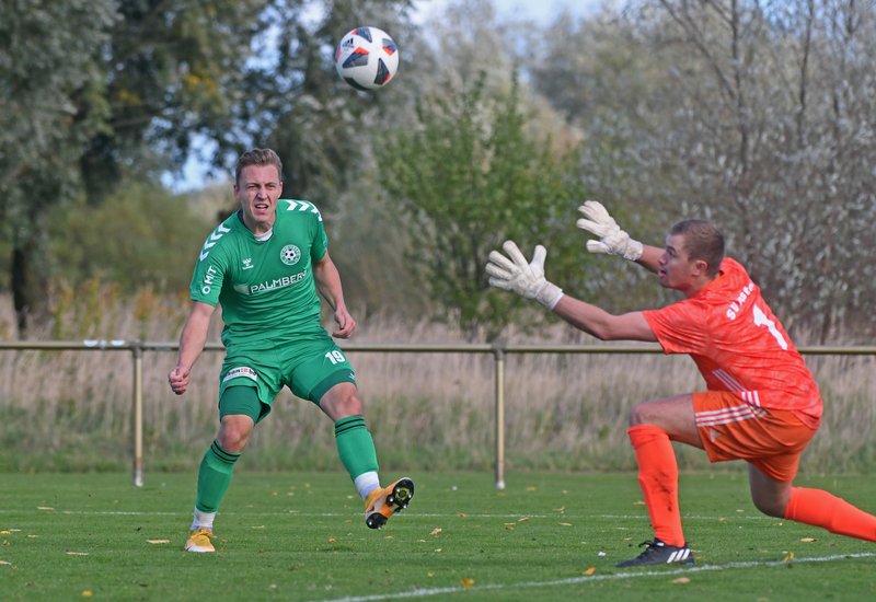 Eine knappe halbe Stunde brauchte Schönberg, um das Tor des SV Pastow erstmalig in Bedrängnis zu bringen. Nach starker Vorarbeit von Erik Schameitke auf der rechten Seite fanden Furkan Kalfa und Michel Beckmann aber nicht die entscheidende Lücke. 3 Minuten später klappte es dann doch. Eine Spitzenflanke von Tom Schulz landete genau auf dem Kopf von Felix Kaben und der traf zum etwas schmeichelhaften 0:1 für die Grün-Weißen. Denn zuvor waren vor allem die Gastgeber, die das Spiel an sich gerissen hatten. Mit mehr Biss in den Zweikämpfen und immenser Laufbereitschaft hatten sie die Partie weitgehend im Griff. Die Freude der Maurine-Kicker hielt dann auch nicht lange an. Bei einer Ecke segelte die Kugel durch den Strafraum und am langen Pfosten stand Hannes Wandt. Und es kam noch dicker. Praktisch mit dem Pausenpfiff passierte den Nordwestmecklenburgern im eigenen Strafraum ein unglaubliches Fehlabspiel und der zwar leicht überraschte, aber dennoch geistesgegenwärtige Josef Lehner sagte herzlich danke. Doofes Tor zu einem doofen Zeitpunkt.