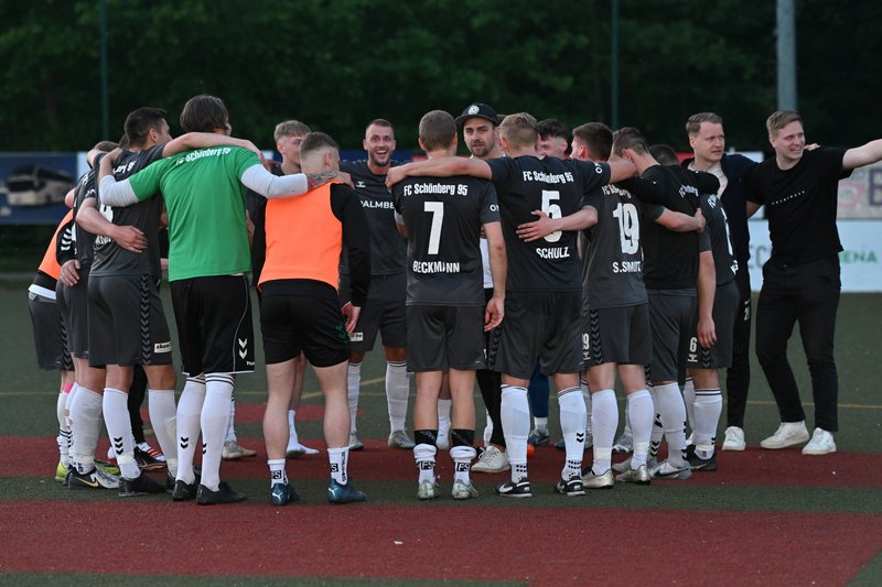 Auch im zweiten Durchgang hatten unsere Grün-Weißen das Heft des Handelns in der Hand und hätten hier den altbekannten Deckel früher auf das Spiel machen können. Doch so dauerte das Zittern auf den vierten Sieg in Folge bis in die letzte Viertelstunde. Einen langen Schameitke Freistoß verlängerte Furkan Kalfa auf Jan Luca Holst, der Ball per Dropkick direkt in den Winkel schweißte. Zwei Minuten später, der dritte Streich. Eine weite Flanke auf den zweiten Pfosten von Eik Schewe legte Furkan Kalfa uneigennützig auf Schönberg Kapitän Michel Beckmann quer, der nur noch danke sagen und den Deckel endgültig draufmachen konnte. Ein Distanzschuss von Salyvan Schmidt, der an Freund und Feind vorbei an den Pfosten ging, hätte das Ergebnis hier sogar noch in die Höhe treiben können. Am Ende blieb der Abpfiff vom souveränen Schiedsrichter Hannes Hermann und die Erleichterung, den Klassenerhalt endlich fix gemacht zu haben.
