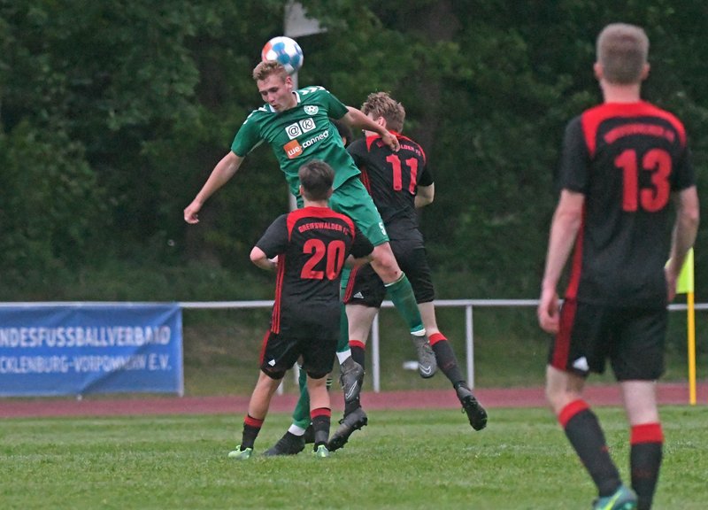 Aber dass man die Mannschaft von Trainer Ralf Schehr nie abschreiben darf, zeigten die Grün-Weißen in der zweiten Halbzeit. Sie kämpften sich wieder in die Partie und plötzlich stand Greifswald massiv unter Druck. Dennis Godknecht scheiterte in der 61. Minute am stark reagierenden GFC-Keeper, aber Ball wollte auch in der Folgezeit einfach nicht über die Linie. Erst in der Schlussphase gelang Schönberg der inzwischen hochverdiente Anschlusstreffer. Dennis Godknecht hatte sich auf der rechten Seite energisch durchgesetzt und seinen Ball drückte Tim Niklas Cordt am langen Pfosten aus Nahdistanz ins Netz. Bis zum Schlusspfiff hauten die Jungs noch einmal absolut alles raus, aber es sollte am Ende wohl nicht sein.