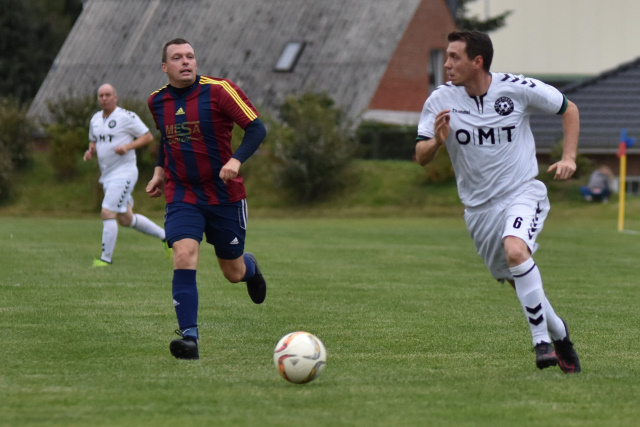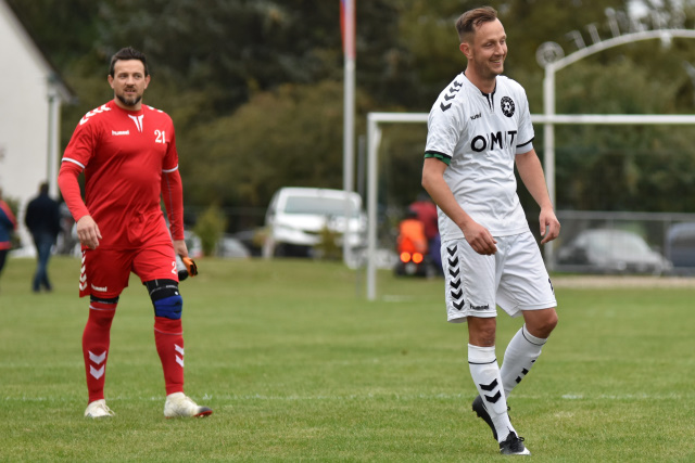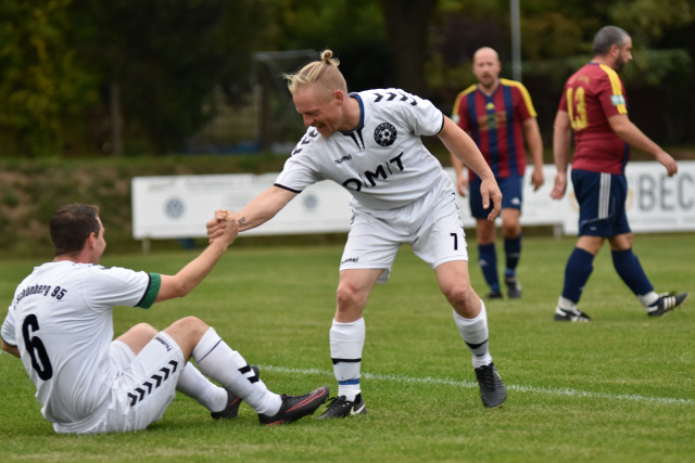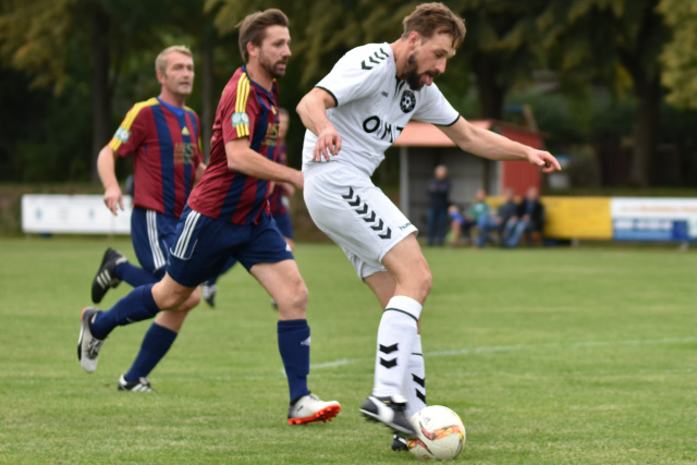 Die zweite Hälfte ist eigentlich recht schnell zusammengefasst. Carlow traf gleich nach drei Minuten zum 1:4. Ein Aufflammen, mehr nicht. „Können wir abhaken heute“, war da zu hören. Dann verstrickten sich einige Spieler untereinander in Wortscharmützel, haderten mit dem Schiri und so plätscherte das Spiel dann etwas vor sich hin. Unsere Truppe konnte nicht mehr so oft und gefährlich vor die Kiste spielen wie in Halbzeit eins. In der 55. sicherte Uwe Scharfschwerdt mit einer Glanzparade den soliden Vorsprung. Nach und nach wurden die vielbesagten Räume dann größer und nach zwei, drei verunglückten Angriffen konnte eine schlecht geklärte Ecke zum 5:1 verwandelt werden. Guido Huisman stand bei der Hereingabe goldrichtig. Kurz vor Schluss dribbelte sich Rene Schneider dann nochmal in die gegnerische Gefahrenzone, im Fallen zog er ab, der Ball kullerte parallel vor dem Tor entlang und landete schlussendlich bei Michael Pekrun, der den Sack zu machte. Mit diesem nie gefährdeten und verdienten 6:1 sicherten sich unsere Alten Herren also den zweiten Platz. Alles in allem eine zwar durchwachsene, aber am Ende erfolgreiche Saison. „Wir wollten unter die ersten Drei kommen und an Anker ist eh nicht vorbeizukommen, von daher alles paletti“, resumierte ein zufriedener Thomas Becker nach dem Spiel. Glückwunsch Männer!