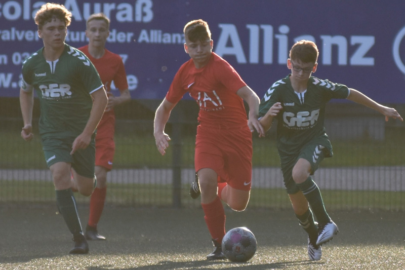 Nach der Halbzeitpause, in der es neue Instruktionen vom Trainergespann gab, war unsere B-Jugend duetlich besser im Spiel. Die Laufleistung sowie der kämpferische Einsatz konnten deutlich gesteigert und so die Partie ausgeglichener gestaltet werden. Das war es wohl auch was den beiden Trainern in der ersten Hälfte so gar nicht gefallen hatte. Leider konnten sich unsere Maurine-Kicker nicht mehr für ihren gesteigerten Einsatz belohnen. Maurice Plath konnte seinerseits noch das eine oder andere mal sein Können beweisen, indem er einige Bälle herausragend abwehrte. Am Ende stand ein 1:5 zu Buche, aus dem die Mannschaft lernen und durchaus optimistisch nach vorn blicken kann. Wenn nämlich Einsatzwille und mannschaftliche Geschlossenheit vorgelebt wird, so wie in der zweiten Halbzeit, dann wird man dafür letzendlich immer belohnt.