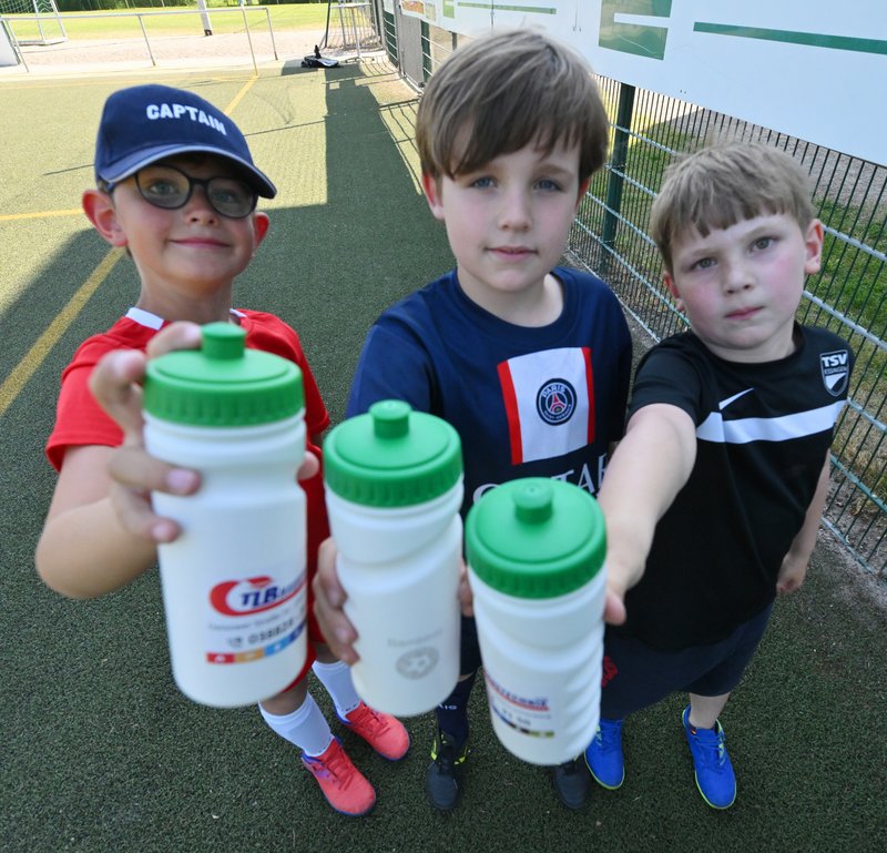Es ist wichtig, beim Training ausreichend zu trinken – insbesondere bei den derzeitigen sommerlichen Temperaturen. Unsere Bambinis freuen sich deswegen sehr über die 20 Trinkflaschen, die Nicole und Peter Trame von der Schönberger Firma TLB-Haustechnik ihnen geschenkt haben. Vielen Dank an TLB-Haustechnik für die freundliche Unterstützung unserer Jüngsten!