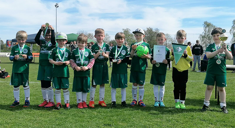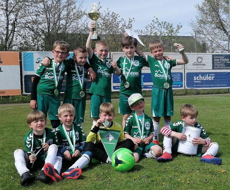 Nach sechs Spielen, wovon bis auf ein Unentschieden alle gewonnen werden konnten, winkte der erste Platz. Mit 16 Punkten und einem Torverhältnis von 13:0 konnten unsere Kleinsten sichtlich erschöpft, aber vor allem glücklich und stolz die Heimreise antreten.