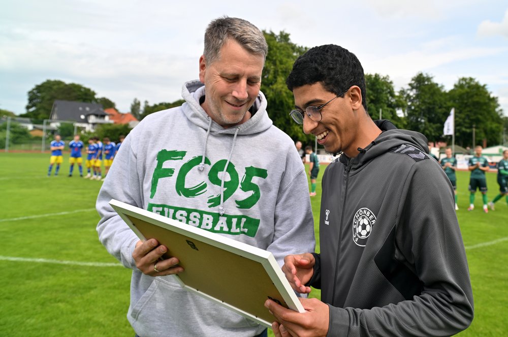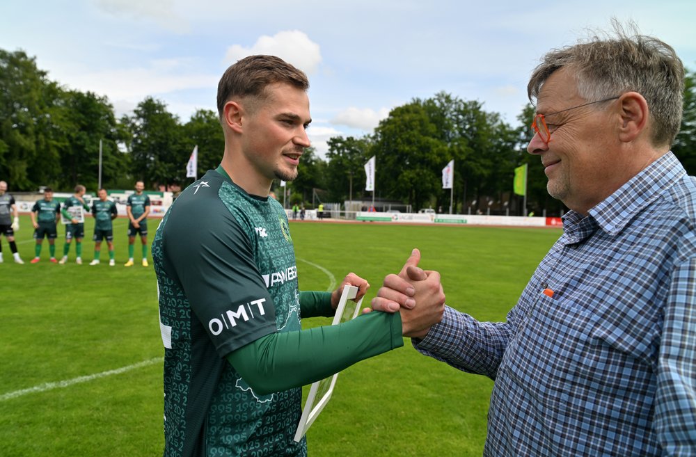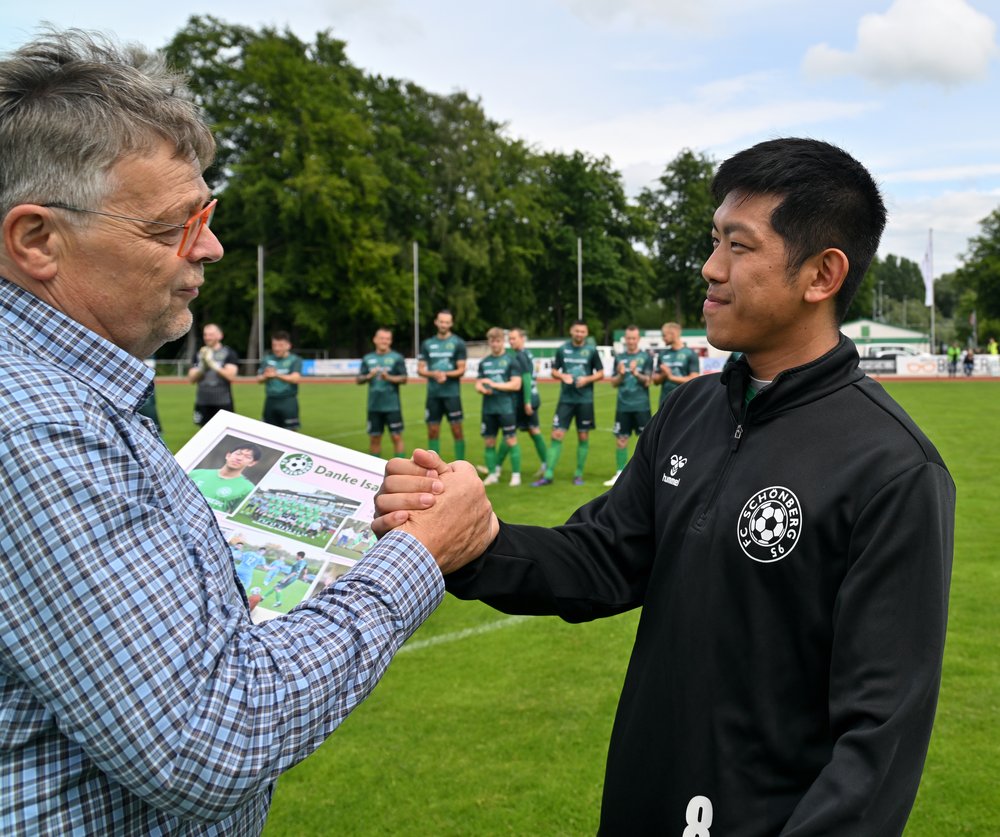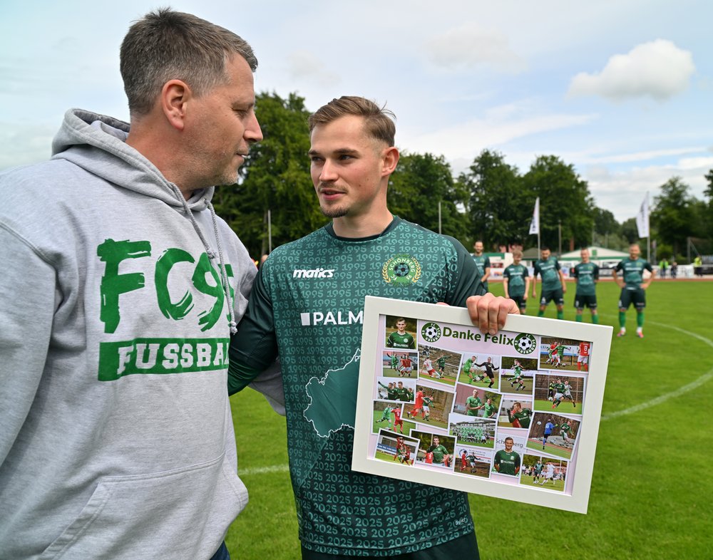 Nach starken Schönberger Auftaktminuten übernahmen die Gäste den weiteren Verlauf der ersten Hälfte. Auch weil Niklas Baeskow selbst schwerste Bälle wegfischte, blieb der Dauerdruck der Neubrandenburger aber lange folgenlos. Erst kurz vor dem Halbzeitpfiff fand die Nawotke-Elf die entscheidende Lücke und nahm durch das Tor von Misha Kurghinyan ein verdientes 0:1 mit in die Pause. In Halbzeit 2 änderte sich die Partie dann grundlegend. Die Maurine-Kicker waren nun auch endlich wach und lagen nach 2 sehr schön herausgespielten Toren plötzlich vorn. Nach dem Ecke-Kopfball-Tor-Ausgleich durch Dennis Kühl folgte in der Schlussphase der emotionalste Moment des Spiels. Tom Schulz, Felix Kaben und Michel Beckmann bekamen ein letztes Mal ihre Bühne im Schönberger Palmberg-Stadion. Sie verließen unter dem Applaus der Fans, der Mitspieler und auch des heutigen Gegners das Feld. Alle guten Wünsche für Euch auf Euren weiteren Wegen und vielen Dank für Euren vorbildlichen Einsatz im grün-weißen Trikot. Ihr werdet fehlen. Die Platzherren hatten sich nach diesem Wechsel dann noch nicht wieder sortiert und der 1. FC Neubrandenburg 04 wusste dies zum Siegtreffer zu nutzen, aber für beide Mannschaften ändert das Resultat tabellarisch praktisch gar nichts.