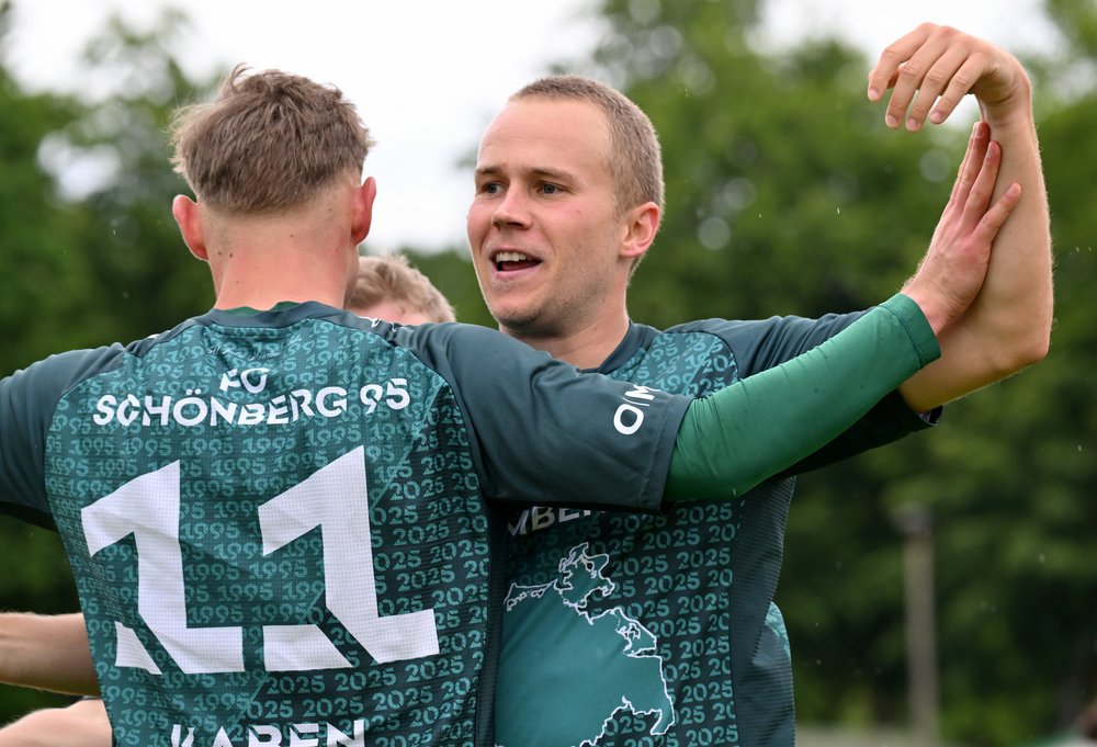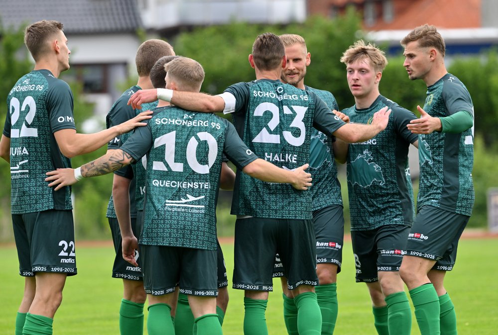 FC Schönberg 95: Niklas Baeskow, Erik Schameitke, Tom Schulz (83. Jahn-Sylas Schmidt), Jannes Kanzog, Michel Beckmann (83. Isamu Takahashi), Felix Kaben (83. Salyvan Schmidt), Daniel Wobig (46. Tim Queckenstedt), Denis Godknecht, Daniel Halke, Jan Muhlack, Thomas Aldermann (46. Tom Jurga)