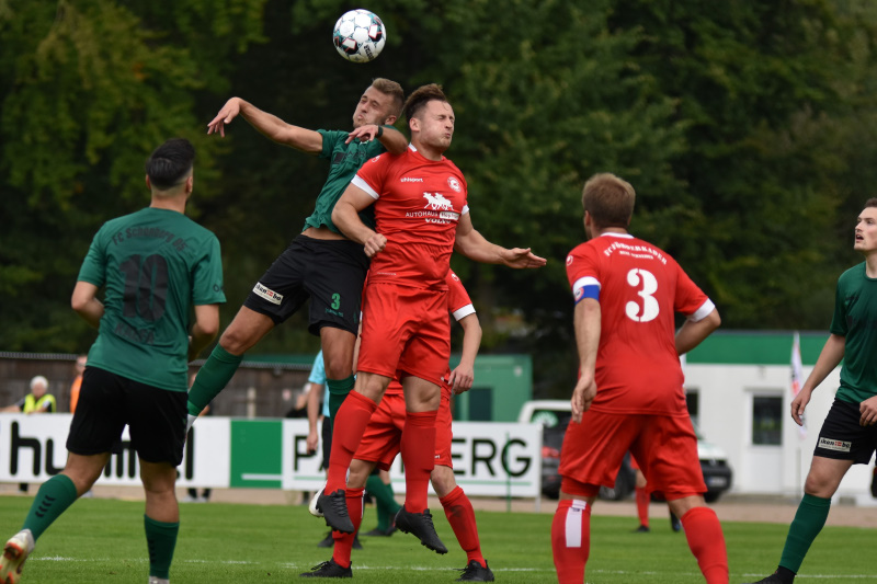 In der zweiten Hauptrunde des „Lübzer Pils Cup“ empfing der FC Schönberg 95 an diesem Sonntag den FC Förderkader Rene Schneider. Die beiden Verbandsligisten waren spürbar darauf aus eine Runde weiter zu kommen. Den besseren Start erwischten dabei unsere Gäste, die in der 8. Spielminute einen Konter erfolgreich zur 1:0 – Führung abschließen konnten. Jelto Focke Reuter hatte nach knapp einer viertel Stunde den Ausgleich auf dem Fuß, aber der Ball konnte in letzter Sekunde von einem Gegenspieler auf der Linie geklärt werden. In den folgenden 15 Minuten ergaben sich weitere gute Möglichkeiten, die unsere Maurine-Kicker aber leider liegen ließen. Kurz vor der Pause gab es dann noch mal einen Paukenschlag. Ein langes Solo des Gegners endete damit, dass der Spieler den Ball selbst vertendelte. Im darauffolgenden Tumult täuschte er eine Kopfnuss an, was genauso eine Tätlichkeit ist wie eine echte Kopfnuss und somit zeigte der Schiedsrichter korrekt die rote Karte. Schönberg sollte also ab sofort mit einem Mann mehr agieren können.