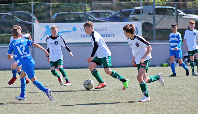 Zum ersten Mal in der Geschichte des FC Schönberg nahmen die D-Junioren am Wochenende in Hamburg-Jenfeld an einem der deutschlandweit fünf Regionalturnieren des VW Junior Masters teil und zogen sich mehr als achtbar aus der Affäre bei dieser Herausforderung. Insgesamt waren 24 Mannschaften aus den fünf norddeutschen Bundesländern, darunter mit dem FC 95 und dem FC Mecklenburg Schwerin zwei aus Mecklenburg-Vorpommern, in viere Staffeln am Start. „Die Jungs haben sich sehr gut verkauft. Mit etwas Glück war sogar der Sprung ins Viertelfinale an diesem Tag möglich“, so Trainer Wilfried Rohloff, der allerdings auf Konstantin Markschies (privat verhindert) und Luca Schulze, der sich bei einem Trainingsspiel gegen die C2 des FC drei Tage vor dem Turnier eine schwere Bänderverletzung zuzog, sein Team aber auf Krücken begleitete, verzichten musste. „Ein großes Dankeschön möchte wir an die Firma Flaegel-Reisen aus Gadebusch richten, die die Jungs gemeinsam mit ihren Eltern jederzeit sicher nach Hamburg und zurück brachte“, so der Trainer weiter.