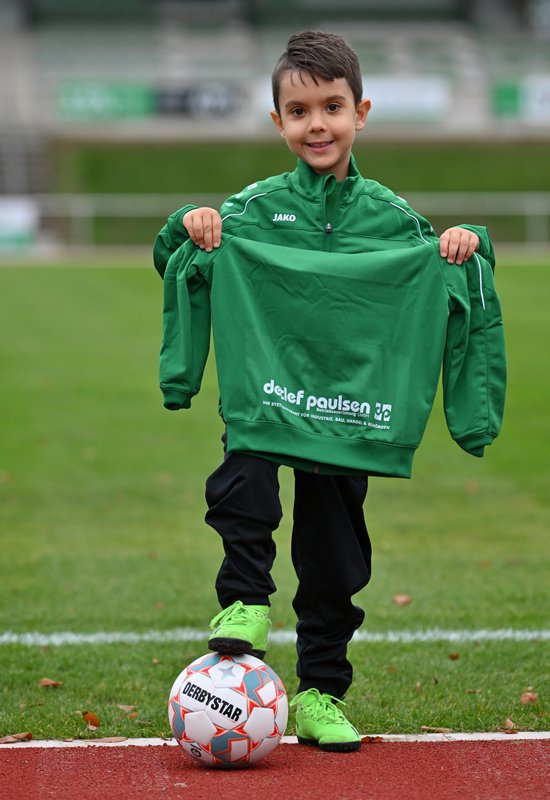 Die Firma Detlef Paulsen Betriebsausrüster hat unsere Bambinis mit schicken neuen Trainingsanzügen ausgestattet. In der vergangenen Woche hat Simon de Greef unsere Jüngsten besucht und den Spielern und Trainern ihr neues Outfit übergeben. Die Freude bei den Kids war sichtlich groß und wir sagen Dankeschön an die Firma Detlef Paulsen Betriebsausrüster für die freundliche Unterstützung unseres Nachwuchses!