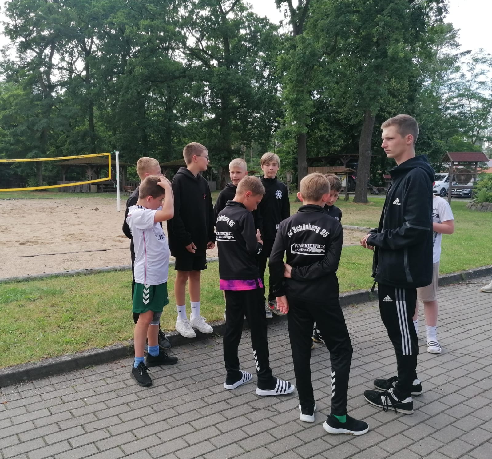 Am Abend hieß es dann Betreuer gegen die Organisatoren des Germany Cups von den SFG Turnieren. Der Trainer Leon Jörn und Betreuer „Matze“ schnürten dabei selber nochmal die Fußballschuhe. Die Freude war dabei wahnsinnig groß, denn Leon Jörn traf gleich 2x für die Betreuer, der von seiner Mannschaft und auch anderen Mannschaften großartig gefeiert worden ist! Das Spiel endete mit einem Sieg für die Betreuer.