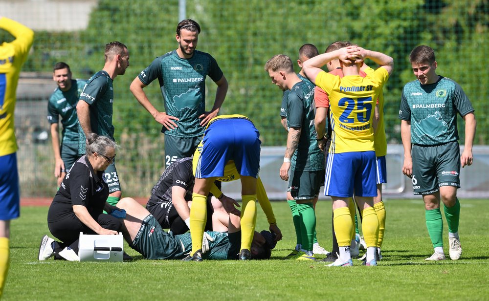 Eine schwere Verletzung ohne gegnerische Einwirkung überschattete die 2. Halbzeit der heutigen Verbandsligapartie zwischen dem FC Schönberg 95 und dem Penzliner SV. Schönbergs Abwehrspieler Max Kley musste für weitere Untersuchungen ins Krankenhaus gebracht werden und wir wünschen und hoffen natürlich, dass Max schnellstmöglich wieder auf die Beine kommt.