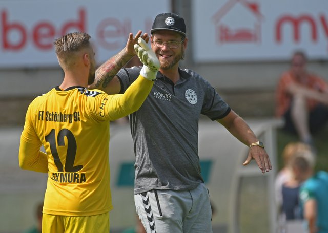 Schönberg spielte die 30 zusätzlichen Minuten engagierter, konnte aber den entscheidenden Nadelstich nicht setzen, so dass am Ende ein Elfmeterschießen über den Einzug ins Halbfinale entscheiden musste. Dieses begann für die Nordwestmecklenburger allerdings dramatisch, denn der erste Versuch landete am Pfosten. Auf Przemyslaw Szymura war jedoch wieder Verlass, denn er hielt den Schuss von Dennis Kühl. Der Druck des letzten Elfmeters lag schließlich bei Christoph Fischer, der dann die Kugel gegen die Latte setzte. Der FC Schönberg 95 steht damit im Halbfinale des Landespokals und kann sich auf das nächste Highlight freuen: Am kommenden Wochenende gastiert der FC Hansa Rostock im Palmberg-Stadion!