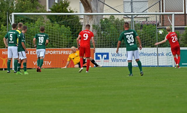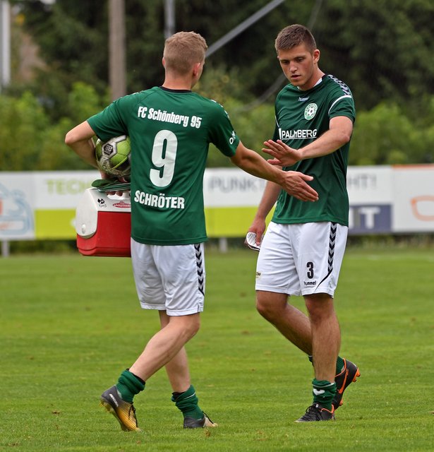 FC Schönberg 95: Paul Scherz, Erik Schameitke (63. Marvin Miltzow), Hannes Komoss, Florian Köpke, Hendrik Schröter (46. Sebastian Burmeister), Thomas Aldermann, Felix Kaben, Chris Kowalski (46. Marcel Behm), Finn Lukas Burmeister (21. Gino Damrau), Marcel Nagel, Marvin Worreschck, Timo Poch (46. Max Iserhot)
