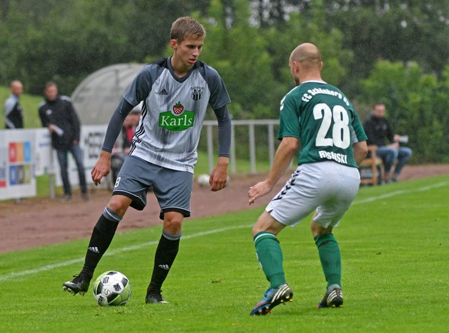 Bereits nach 6 Minuten war Hannes Komoss seinen Bewachern zum ersten Mal enteilt, doch FSV-Keeper Jan Erik Gutknecht klaubte ihm die Kugel im letzten Moment vom Fuß. Als dann 60 Sekunden später ein verunglückter Abwehr-Kopfball bei Marcel Nagel landete, machte sich dieser damit auf den Weg in Richtung Tor. Alle Versuche, ihn dabei zu stoppen, schlugen fehl und am Ende behielt Marcel Nagel auch noch die Übersicht. Das 1:0 war kaum gefeiert, da schickte Marcel-Sven Meier Torjäger Hannes Komoss mit einem sehr langen Ball erneut auf die Reise. Und diesmal ließ sich Hannes Komoss die gute Gelegenheit nicht entgehen, denn er machte in der 10. Minute das 2:0. Der frühe Doppelschlag hinterließ auf beiden Seiten Spuren. Während sich die Gäste sichtbar konsterniert zeigten, spielte Schönberg fortan mit noch breiterer Brust. Mit Aggressivität in den Zweikämpfen und hoher Laufbereitschaft kontrollierten die Maurine-Kicker Ball und Gegner und erzielten so mit einem von Hannes Komoss direkt verwandelten Freistoß noch vor der Pause das verdiente 3:0.