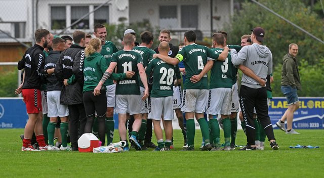 „Wir hatten uns eigentlich vorgenommen, nicht nachzulassen. Aber beim Stand von 3:0 ist das wohl so im Kopf drin“, beschrieb Kapitän Erik Schameitke die Zeit nach dem Wiederanpfiff, in der die Gastgeber ein wenig kürzer traten. Bis auf eine Schrecksekunde, David Schubel schlitterte in Pfostennähe am Ball vorbei, blieb dies aber ohne Folgen für den FC Schönberg 95. Ganz im Gegenteil – bei einer Aldermann-Ecke stieg Marcel-Sven Meier am höchsten und er versenkte das Leder zum 4:0 im Tor. Das war zu diesem Zeitpunkt sicherlich die endgültige Entscheidung. Das 5:0 war dann praktisch ein Geschenk der Gäste, das Hannes Komoss aber nur zu gern annahm.