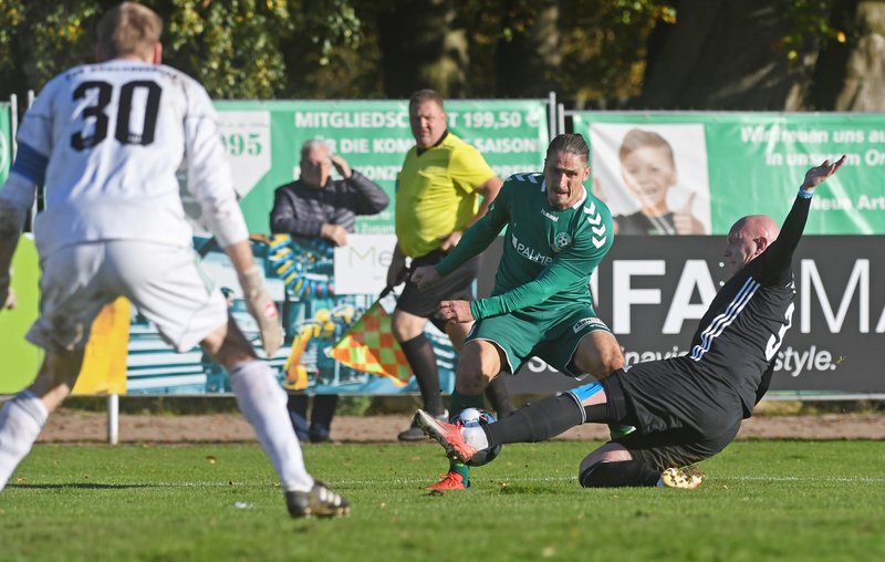 Die Partie hatte knapp begonnen – da lagen die Schönberger schon zurück, denn Hannes Mietzelfeld hatte die Kugel bereits nach 5 Minuten im Nachschuss versenkt. Die Grün-Weißen kamen auch in der Zeit danach einfach nicht ins Spiel und mussten im Anschluss an einen starken Pass von Hannes Mietzelfeld sogar noch das 0:2 durch Tobias Hagedorn hinnehmen. Die Maurine-Kicker blieben vor der Pause letztlich ebenso blass wie harmlos und sie hatten damit für den zweiten Durchgang eine gewaltige Hypothek vor der Brust.