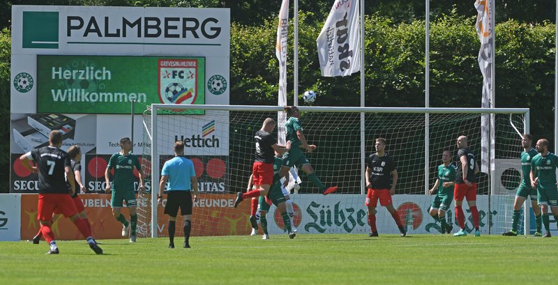 Nach einem Lattentreffer der Gastgeber und einem vergebenen Hundertprozenter der Gäste gelang dem Grevesmühlener FC nach einer knappen halben Stunde das entscheidende Tor. Robert Müllers Freistoß blieb zwar in der Mauer hängen, doch der Nachschuss zappelte im Tornetz. Schönberg war jederzeit bemüht, brachte aber aus dem Spiel heraus kaum Torgefahr zustande. Erst in den Schlussminuten lag bei einer Doppelchance für Sören Pietschker der Ausgleich in der Luft. Im ersten Versuch traf er mit einem Schuss Pfosten und Latte, der zweite Versuch ging knapp über den Querbalken.