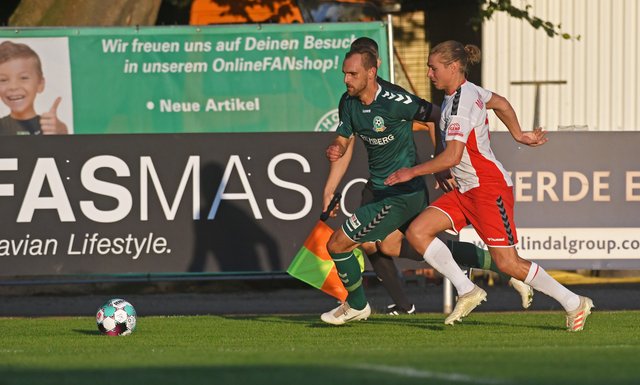 Mit dem Wiederanpfiff stand dann aber wieder der FC Schönberg 95 aus der Anfangsphase auf dem Spielfeld. Die Nordwestmecklenburger wollten den Ausgleich und machten Druck. Nach zwei guten Möglichkeiten in den Anfangsminuten war es Finn Lukas Burmeister, der eine Gomig-Flanke zum Ausgleich unter die Latte hämmerte und der sein Team damit zurück ins Spiel brachte. Wenig später schaltete Dennis Wehrendt erneut am schnellsten. Wieder kam ein Freistoß von Simon Leu in Strafraum geflogen, Schönbergs Neuzugang setzte energisch nach und brachte seine Maurine-Kicker zum zweiten Mal in Front. Diesmal ließen sich die Grün-Weißen die knappe Führung aber nicht mehr nehmen und brachten das 3:2 über die Zeit. „Beide Mannschaften haben sich nichts geschenkt. Es war ein Spiel mit gutem Niveau und es ist schade, dass wir für unsere Bemühungen nicht belohnt wurden. Wir haben uns das Abseitstor nochmal angesehen und konnten keine Abseitsstellung feststellen. Vielleicht wäre die Partie mit diesem Treffer anders gelaufen“, gab der Gästetrainer Sven Lange zu Protokoll. Schönberg hingegen feierte seinen gelungenen Start in die Verbandsligasaison.