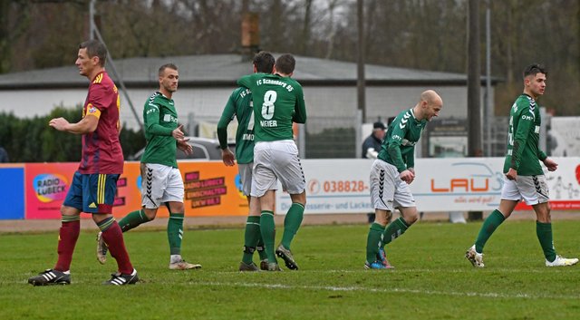 FC Schönberg 95: Przemyslaw Szymura, Simon Leu, Erik Schameitke, Marvin Miltzow, Hannes Komoss, Marcel-Sven Meier (74. Felix Kaben), Fabian Franke, Finn Lukas Burmeister (46. Stephan Weckwert), Marcel Nagel (46. Marcel Behm), Marvin Worreschck, David Rosinski