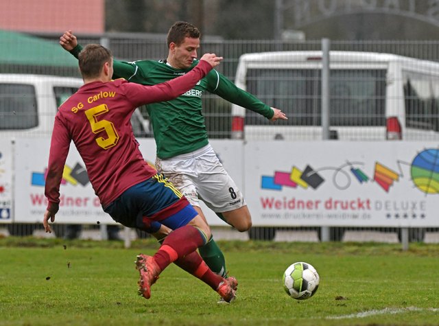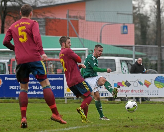 Kurz nach dem Beginn der zweiten Hälfte sorgte ein von Marcel-Sven Meier souverän verwandelter Foulelfmeter für die endgültige Entscheidung – auch weil die SG Carlow sich anschließend selbst dezimierte. Den Schlusspunkt unter die einseitige Partie setzte Fabian Franke. Mit einem herrlichen Schlenzer von der rechten Seite traf er wie Simon Leu beim 2:0 genau ins Dreiangel.