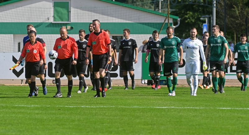 Die erste Durchgang verlief aus Sicht der Gastgeber enttäuschend. Nicht nur wegen des frühen Gegentors, bei dem Qutaiba Alibrahim Alsharabi den weit vor seinem Tor stehenden Przemyslaw Szymura geschickt überlistete, auch wegen des insgesamt trägen Auftritts des Teams über die gesamten 45 Minuten. Auch nach dem Rückstand ging zunächst kein Ruck durch die Mannschaft. Ganz im Gegenteil – kurz vor der Pause klatschte ein per Kopf verlängerter Freistoß von Philipp Scheller an den Pfosten und wenig später rettete Przemyslaw Szymura gegen den freistehenden Qutaiba Alibrahim Alsharabi und er konnte zudem auch noch den Nachschussversuch von Patrick Apitz abwehren.