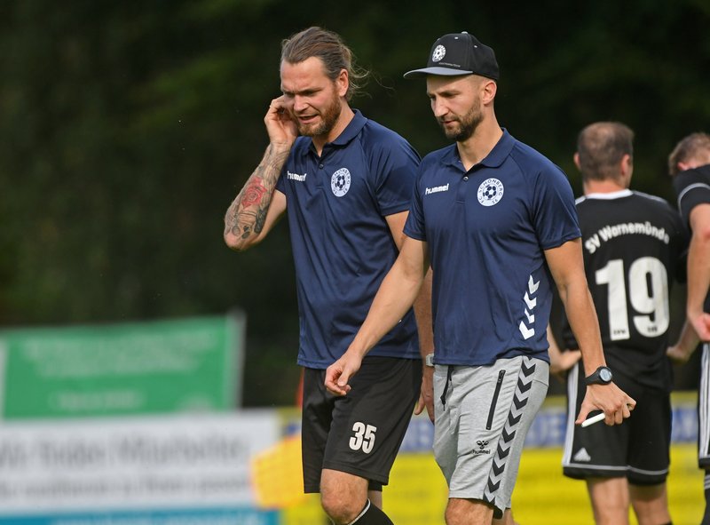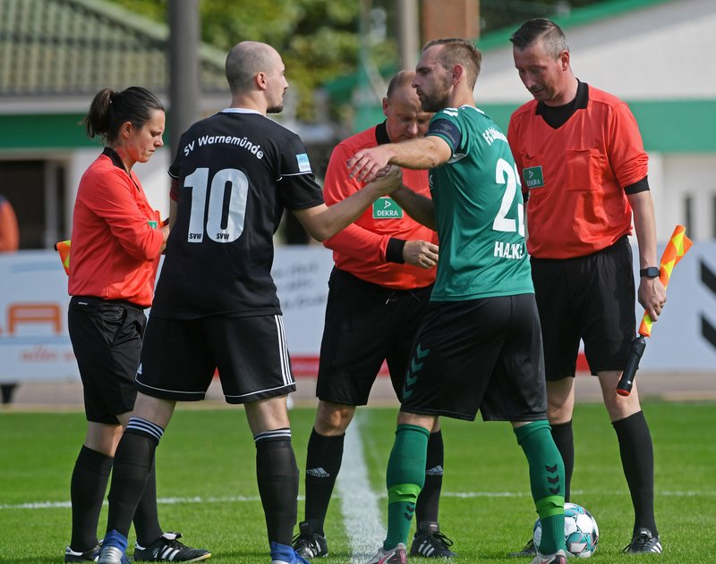 SV Warnemünde: Thilo Mülling, Paul Schröder, Sebastian Stein, Martin Ahrens (88. Olaf Mahlke), Qutaiba Alibrahim Alsharabi (78. Paul Kuchel), Hannes Hojenski, Patrick Apitz, Danny Koop, Philipp Scheller (68. Marco Sander), Lucas Schewe, Christoph Stein