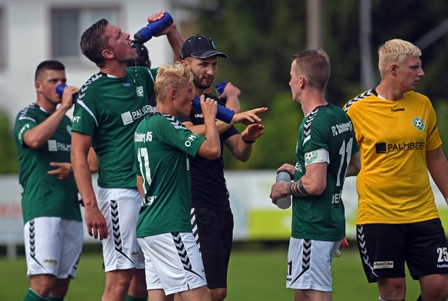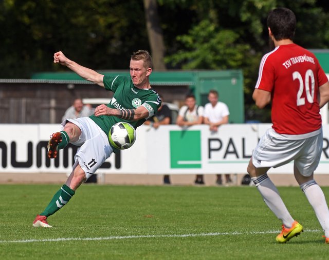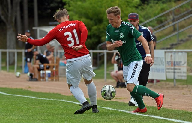 Die Außentemperaturen, das intensive Trainingsprogramm der letzten Tage sowie urlaubs- und verletzungsbedingte Ausfälle forderten in der ersten Halbzeit ihren Tribut. Kaum Tempo, kaum Chancen auf beiden Seiten und so bleiben eigentlich nur 2 Szenen in Erinnerung. In der 20. Minute wurde Max Iserhot, der heute seinen 20. Geburtstag feierte, von der Nummer 20 der Travemünder im Strafraum von den Beinen geholt. Hannes Komoss trat zum Foulelfmeter an, fand dabei aber im TSV-Keeper Patrick Raube seinen Meister. Und der freistehende Cedric Wilken hatte nach einer knappen halben Stunde absolut keine Schwierigkeiten, eine auf den langen Pfosten verlängerte Ecke zum 0:1 ins Schönberger Tor zu befördern. Nach der Pause wurde die Partie ein wenig munterer. Die Grün-Weißen investierten nun deutlich mehr in ihr Angriffsspiel und hatten so zeitweise den Ausgleich im Bereich des Möglichen. In der 75. Minute zappelte die Kugel nach einer Poch-Flanke sogar im Netz, doch der vermeintliche Torschütze Hannes Komoss soll im Abseits gestanden haben. Bis zum Ende wollte der Manthey-Elf kein Treffer gelingen und damit musste die neuformierte Mannschaft ihre erste Testspielniederlage hinnehmen.
