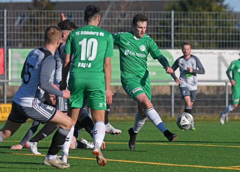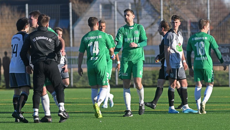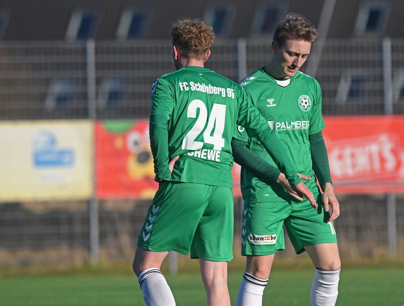 FC Schönberg 95: Przemyslaw Szymura, Simon Leu, Erik Schameitke, Jannes Kanzog (46. Thomas Aldermann), Rene Lübcke (74. Eik Schewe), Jelto Focke Reuter, Furkan Kalfa (90.+3 Finn Lukas Burmeister), Andreas Gomig, Marcel Nagel, Nick Heymann, Daniel Halke
