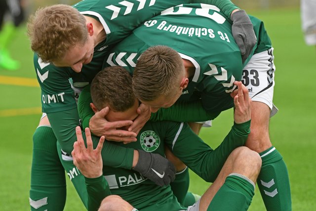 Kurz nach dem Wiederanpfiff holte sich Schönberg mit Windunterstützung die Führung zurück – ein als Flanke geplanter Ball von Hannes Komoss wurde durch eine kräftige Böe für Norman Köhlmann unhaltbar in den Winkel gedrückt. Nicht nur in dieser Situation, sondern praktisch über die gesamten 90 Minuten nahm der starke Wind Einfluss auf das Spielgeschehen und vieles blieb so dem Zufall überlassen. Als der FSV dann aus einer Ecke den erneuten Ausgleich machte, lief alles auf ein sicherlich gerechtes Unentschieden hinaus. Aber in der ersten Minute der Nachspielzeit setzte der Tabellenführer noch einen Konter. Marcel Nagel behielt dabei die Übersicht und schoss seine Maurine-Kicker in einen regelrechten Freudentaumel.
