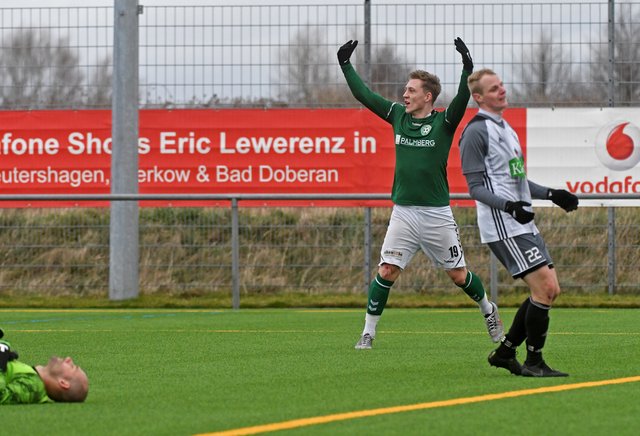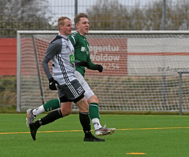 Einen langen Abschlag von FC-Keeper Przemyslaw Szymura nahm Marcel-Sven Meier gekonnt mit auf seinen Weg vor das FSV-Tor. Und mit einem platzierten Flachschuss ins lange Eck war’s dann auch gleich passiert, denn der FC Schönberg 95 konnte so seine frühe Führung feiern. Der Treffer hinterließ zunächst Spuren bei den Gastgebern. Den Gästen gelang es trotz guter Möglichkeiten jedoch nicht, die Verunsicherung der Gastgeber für das 0:2 nutzen. Im weiteren Lauf der ersten Halbzeit fing sich der FSV aber wieder. Mit ein wenig Glück überstanden die Grün-Weißen zwei richtig gute Chancen der Platzherren, mussten dann aber in der 37. Minute doch den Ausgleich hinnehmen.