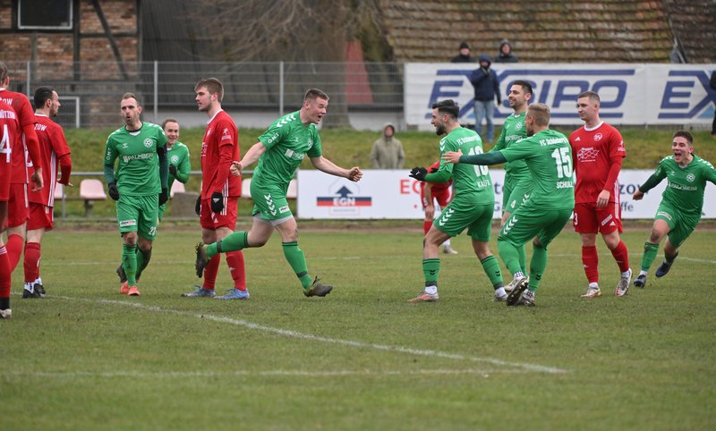 Euphorischer Jubel auf der einen Seite und grenzenlose Enttäuschung auf der anderen Seite. Kurz vor Ende der Partie hatte der erst 2 Minuten zuvor eingewechselte Sören Pietschker einen Freistoß von der rechten Seite per Kopf ins Tor des TSV Bützow verlängert und den Grün-Weißen so mit seinem ersten Pflichtspieltor im Männerbereich den Sieg in letzter Minute gesichert. Zuvor stellten die Gastgeber aus Bützow ihre Gäste aus Schönberg mit mannschaftlicher Geschlossenheit und konzentrierter Abwehrarbeit vor Probleme. Es gab praktisch kein Durchkommen für die Grün-Weißen und deswegen musste ein von Christian Boldt an Furkan Kalfa verwirkter Foulelfmeter für die erstmalige Schönberger Führung herhalten. Kapitän Daniel Halke übernahm die Verantwortung und er traf, obwohl Keeper Nino Winter noch dran war. Der TSV zeigte sich jedoch keineswegs geschockt und glich nach einer Ecke durch Leon Höhndorf verdientermaßen aus. Die Maurine-Kicker hängten sich anschließend noch einmal ordentlich rein, ohne sich auf dem schweren Boden gegen die weiter gut stehenden Platzherren entscheidende Vorteile verschaffen zu können. Bis zur 88. Minute, als Trainer Axel Junker mit Sören Pietschker den Sieg einwechselte…