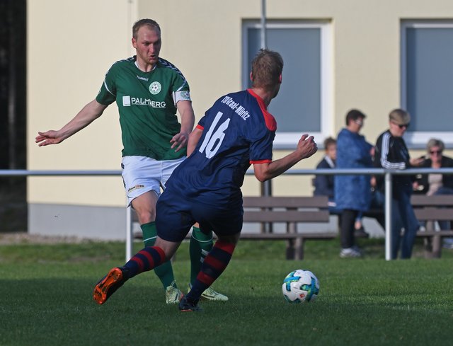 Mit dem Anpfiff der zweiten Halbzeit beteiligte sich dann auch der TSV Graal-Müritz mehr am Spiel. Allerdings bekam Schönbergs aufmerksame Abwehr im Grunde nur bei Standards Probleme, auch weil die Bälle für Torwart Przemyslaw Szymura wegen der tief stehenden Sonne schwer zu sehen waren und den ersten davon lenkte er in der 47. Minute über die Latte. Als dann Maik Gutmann nach einer Notbremse gegen Hannes Komoss die rote Karte sah, hatte der FC Schönberg 95 mit einer guten halben Stunde Überzahlspiel beste Aussichten auf einen Dreier, vergab die Chance auf einen absolut möglichen Auswärtssieg jedoch leichtfertig, was nicht nur Trainer Thomas Manthey in Rage brachte: „Die erste Halbzeit war soweit in Ordnung. Das danach war aber Arroganz und Eitelkeit nicht zu überbieten. Wenn wir nicht in der Lage sind, mit zwei Mann im 5m Raum das Tor zu machen, haben wir die drei Punkte auch nicht verdient.“ Hannes Komoss mit einem Kopfball an die Lattenoberkante, Marcel Behm mit der Hacke, Timo Poch mit einem Kopfball am Tor vorbei – sie alle schafften es nicht, das zweite Tor zu erzielen. Letztlich sorgte ein Freistoß der Gastgeber für jede Menge Frust bei den Gästen. Heiko Hecht zog den Ball auf den langen Pfosten und Florian Möller machte dort per Hechtkopfball den 1:1 Ausgleich. Da waren noch reguläre 5 Minuten zu spielen und die nun mit der Brechstange operierenden Schönberger hatten auch danach genügend erstklassige Möglichkeiten, um die Partie zu gewinnen. Zweimal Marcel Behm und einmal Hannes Komoss wollte das erlösende 1:2 nicht mehr gelingen und so feierten am Ende nur die Graal-Müritzer.
