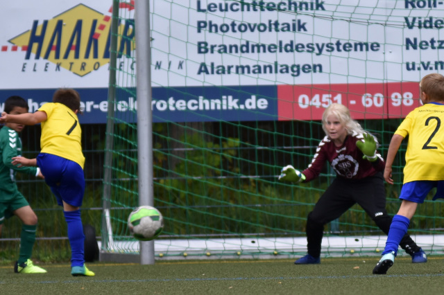 Am vergangenen Freitag trafen unsere kleinsten Maurine-Kicker auf den Mecklenburger SV. In der Kreisliga der F-Junioren wird wie gewohnt ohne Wertung gespielt. Dennoch ist und bleibt Fußball auch hier ein Spiel mit einem Ball, der in ein Tor geschossen wird. Und genau dies tat die Mannschaft von Trainerin Edda Knauer und Co Andy Schröder gleich drei mal. Zuerst stand Mio nach nur drei Minuten völlig frei vor dem gegnerischen Tor, zog formvollendet ab und der Ball landete im Netz. Kurze Zeit später, in der 10. Minute war es dann Jonas, der als einer von drei Wirbelwinden im Schönberger Sturm das zweite Tor erzielen konnte. Danach plätscherte dieses F-Jugend-Spiel wie so oft gesehen von links nach rechts und von vorne nach hinten. Quasi mit dem Halbzeitpfiff hämmerte dann aber nochmal Mio die Pille ins Eck und so ging man verdient mit drei Toren mehr als der Gegner in die Halbzeitpause.
