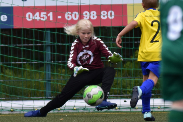 In der zweiten Halbzeit entwickelte sich ein offener Schlagabtausch. Auf beiden Seiten hätten weitere Tore fallen können. Unsere tolle Torfrau Lia verhinderte aber, dass der Mecklenburger SV treffen konnte. Mit ablaufender Spielzeit wurden unsere Einwechselspieler immer unruhiger. Zu gern wollten sie am Spiel teilnehmen und nach und nach kamen sie aufs Spielfeld. Leider blieb auch ihnen das Glück verwehrt weitere Tore für Schönberg zu schießen. Am Ende waren unsere „Kleinen“ alle total platt, aber happy. Erwähnt sei noch, dass Trainerin Edda Knauer mal wieder alles gegeben hat und dieses Wochenende sicher ein paar Probleme mit der Stimme haben dürfte – großartiger Einsatz.