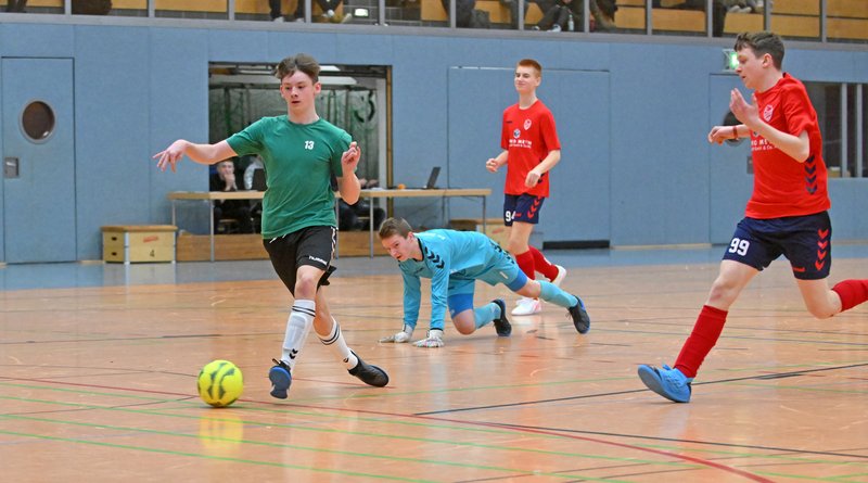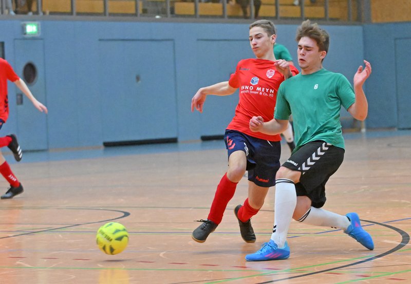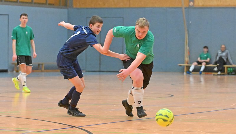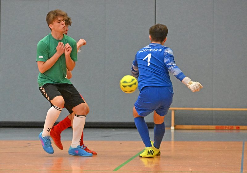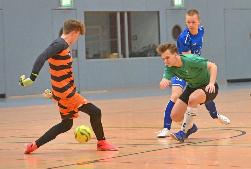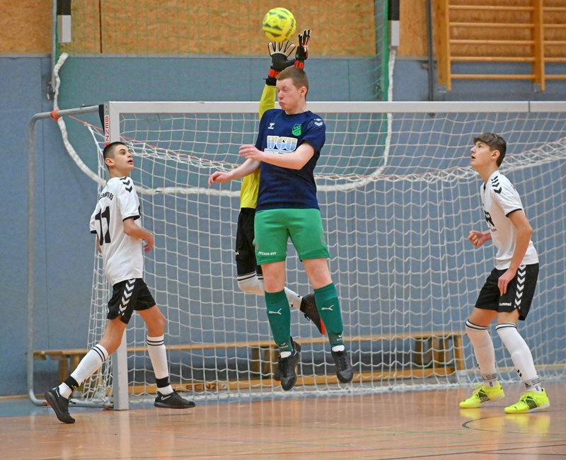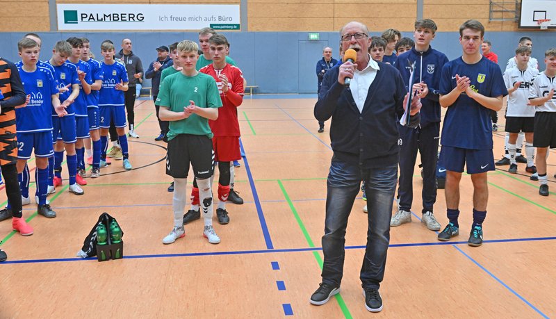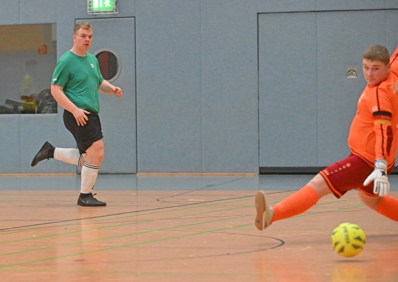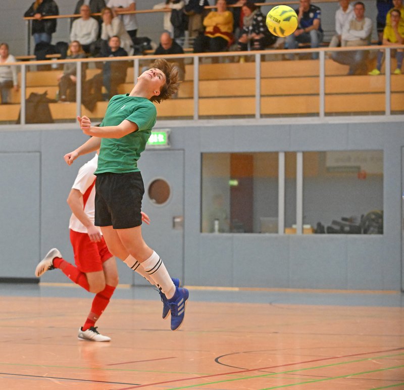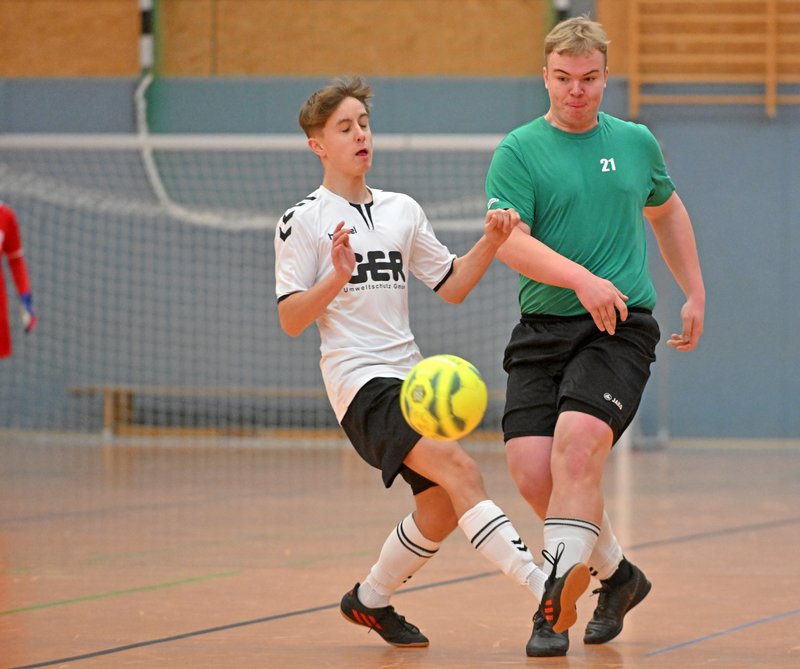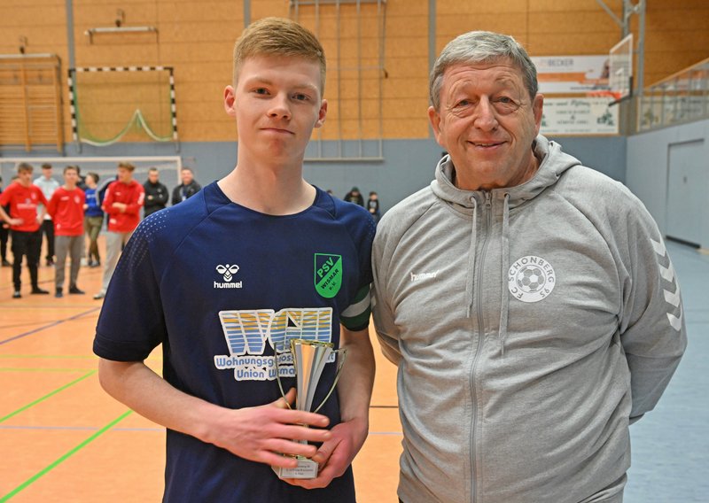 Dieses Trio lieferte sich bis zum Schluss der 28 Spieler, die acht Mannschaften spielten dabei jeder gegen jeden, einen spannenden Kampf, der erst auf der Zielgerade entschieden wurde. Vor der abschließenden letzten Runde sah der PSV Wismar nach dem glücklichen 1:0 gegen Team A des FC Schönberg schon fast wie der sichere Sieger aus. Während der Ratzeburger SV seine „Hausaufgaben“ in seinem letzten Spiel gegen Eintracht Groß Grönau (7:0) souverän löste, sorgte anschließend das B-Team des FC Schönberg, das keineswegs enttäuschte, für die Überraschung des Turniers. Mit 6:0 schossen sie den PSV Wismar zum Abschluss aus der Halle, sehr zur Freude der Ratzeburger und der Kollegen vom A-Team. Um doch noch den Titel zu verteidigen, mussten allerdings das A-Team im letzten Spiel mit elf Toren Unterschied gewinnen, was eine schier unmögliche Aufgabe war. Mit 4:1 überflügelten dann die Schönberger aber noch den PSV Wismar und belegten Platz 2. Dasa B-Team belegte einen respektablen 5. Platz.
