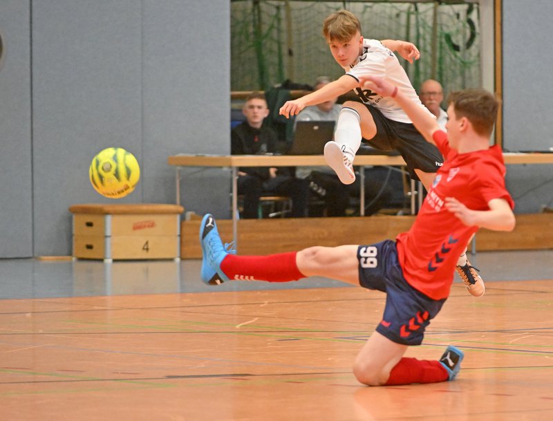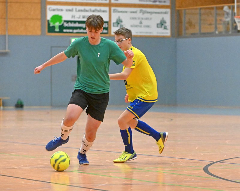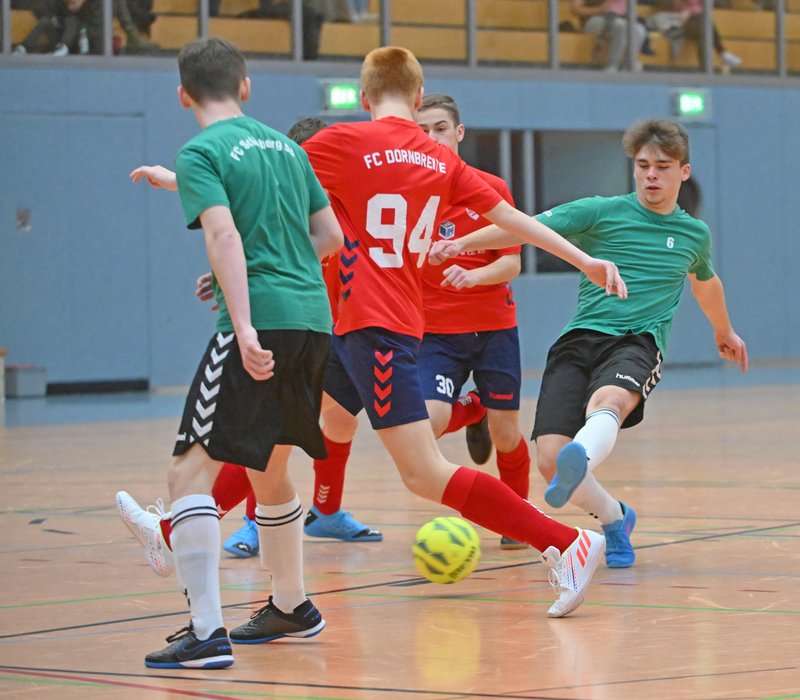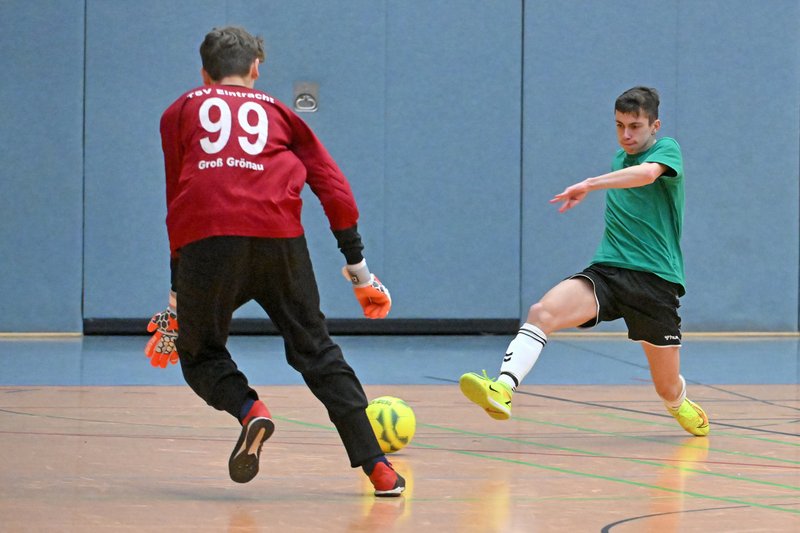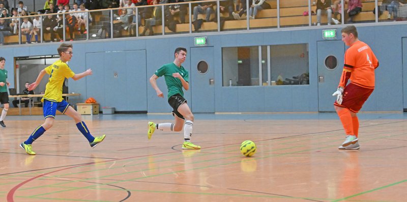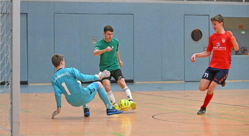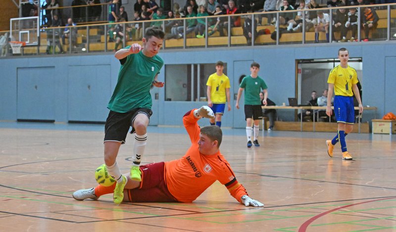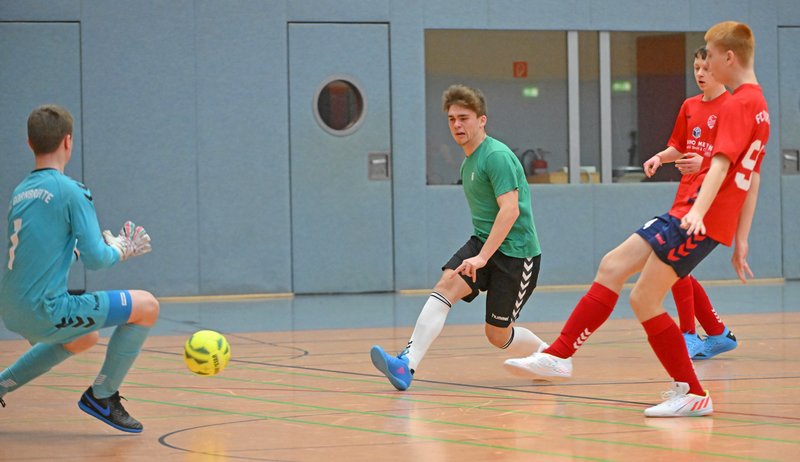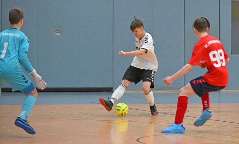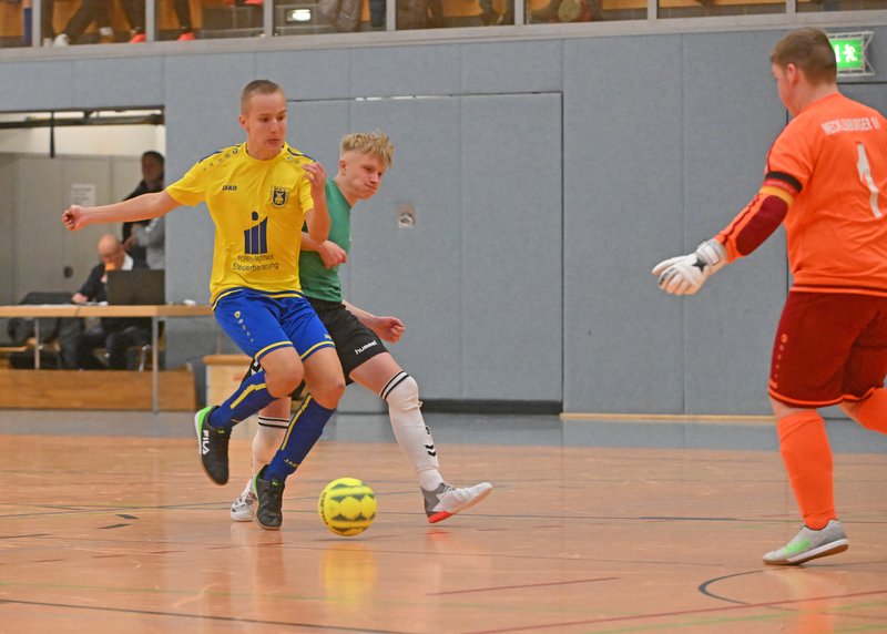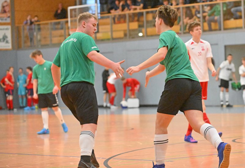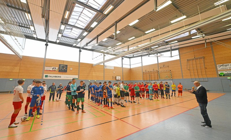 Dieses Trio lieferte sich bis zum Schluss der 28 Spieler, die acht Mannschaften spielten dabei jeder gegen jeden, einen spannenden Kampf, der erst auf der Zielgerade entschieden wurde. Vor der abschließenden letzten Runde sah der PSV Wismar nach dem glücklichen 1:0 gegen Team A des FC Schönberg schon fast wie der sichere Sieger aus. Während der Ratzeburger SV seine „Hausaufgaben“ in seinem letzten Spiel gegen Eintracht Groß Grönau (7:0) souverän löste, sorgte anschließend das B-Team des FC Schönberg, das keineswegs enttäuschte, für die Überraschung des Turniers. Mit 6:0 schossen sie den PSV Wismar zum Abschluss aus der Halle, sehr zur Freude der Ratzeburger und der Kollegen vom A-Team. Um doch noch den Titel zu verteidigen, mussten allerdings das A-Team im letzten Spiel mit elf Toren Unterschied gewinnen, was eine schier unmögliche Aufgabe war. Mit 4:1 überflügelten dann die Schönberger aber noch den PSV Wismar und belegten Platz 2. Dasa B-Team belegte einen respektablen 5. Platz.