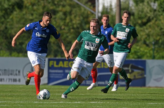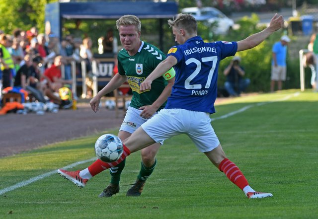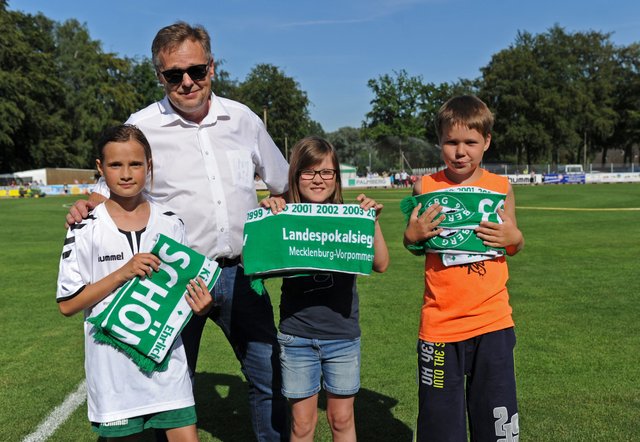 In einer einseitigen Partie siegte Holstein Kiel standesgemäß und deutlich mit 13:0 gegen den FC Schönberg 95. Nur in der Anfangsphase beider Halbzeiten versuchten sich auch die Gastgeber im Torschuss. Marcel Behm hatte dabei in der 47. Minute die beste Gelegenheit zum Ehrentreffer, doch der Holstein-Keeper reagierte glänzend. „Das Ergebnis war heute ohnehin zweitrangig“, trug FC-Trainer Thomas Manthey die Niederlage mit Fassung. „Wichtig war, dass die Jungs heute Spaß hatten und sich von den Profis ein bisschen was abgucken konnten. Es war ein tolles Spiel und ein Super-Highlight für den Verein.“ Auch Hannes Komoss nahm viel Positives mit: „Das ist schon eine andere Welt, aber das Spiel war eine Riesenlehrstunde für uns. Wenn wir nicht so aufgeregt gewesen wären, hätten wir vielleicht vor der Pause 2-3 Fehler weniger gemacht und nicht schon zur Halbzeit so deutlich zurückgelegen.“ Auch Vorstandsmitglied Patrick König ging mit einem Lächeln aus der Partie: „Das hat Spaß gemacht und war eine richtig gute Veranstaltung.“
