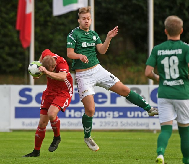 Der zweite Durchgang begann mit einer von Finn Lukas Burmeister wunderbar vorbereiteten Chance für Hannes Komoss, der in Christoph Woelk seinen Meister fand. Das 3:1, das Rick Packheiser kurz darauf erzielte, machte die Sache dann kurzzeitig noch einmal spannend. Die Nordwestmecklenburger bekamen zwar nach einen sensationellen Solo von Felix Kaben umgehend die Möglichkeit, den alten Abstand wiederherzustellen, doch Finn Lukas Burmeister vergab diesen Riesen. Und wer weiß, wie die Partie weiter gelaufen wäre, wenn Cambs-Leezen im Gegenzug das 3:2 geschossen hätte. Die Manthey-Elf machte den Sack dann aber doch endgültig zu. Hannes Komoss gelang nach starker Torwartparade im zweiten Versuch das 4:1 und er haute den Ball auch noch aus der Drehung von der Strafraumgrenze zum 5:1 ins Tor. Marcel Behm gelang mit einem technisch brillanten Heber, der in der Vorwoche in Plate noch neben das Tor ging, der 6:1-Schlussstrich. Der FC Schönberg 95 holte sich damit im 3. Anlauf den ersten hochverdienten Dreier in dieser noch jungen Landesliga-Saison.
