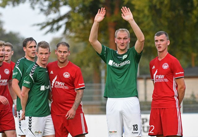 FC Schönberg 95: Przemyslaw Szymura, Gino Damrau, Erik Schameitke, Max Iserhot, Hannes Komoss, Thomas Aldermann (72. Marcel Behm), Kevin Rosinski (68. Hendrik Schröter), Felix Kaben, Finn Lukas Burmeister (77. Niklas Kahle), Marcel Nagel, Sebastian Burmeister
