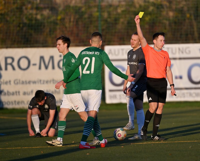 Die knappe Halbzeitführung der Gastgeber ging in Ordnung. Güstrow war das aktivere Team und holte sich mit einem Grube-Kopfball nach einer Ecke die verdiente Führung. Zudem musste sich Niklas Baeskow bei einem gefährlichen auf die Mauerecke gezogenen Freistoß in der 14. Minute sehr lang machen und Sava-Andre Mihajlovic schlug am Ende seines beeindruckenden Sturmlaufs einen Haken zu viel. Für Schönberg traf Michel Beckmann den Außenpfosten.