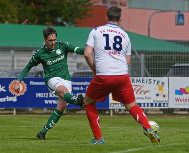Nach nur 33 Sekunden zappelte die Kugel zum ersten Mal im Tornetz der Gäste. Hannes Komoss hatte den ersten Angriff des Spiels nach prima Vorarbeit von Nick Heymann erfolgreich abgeschlossen und bis zur Pause legte Schönberg noch zweimal nach. So richtig zufrieden war man im Lager der Grün-Weißen dennoch nicht, denn die Mannschaft fing sich kurz vor dem Halbzeitpfiff ein ausgesprochen ärgerliches Gegentor.