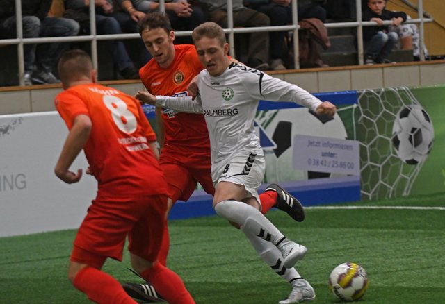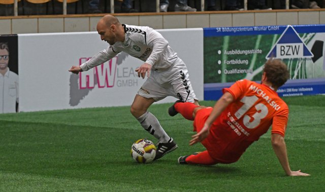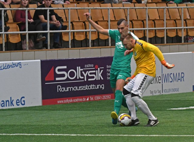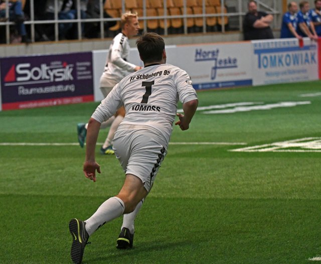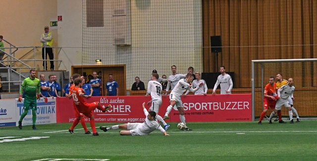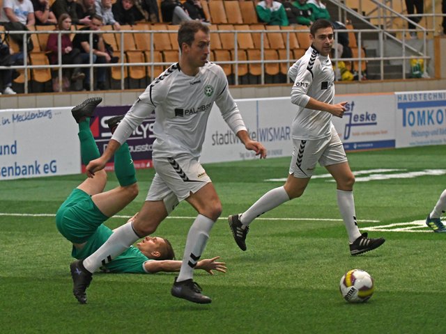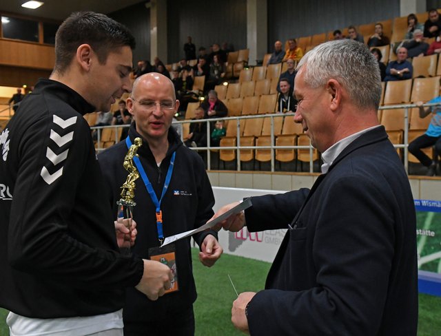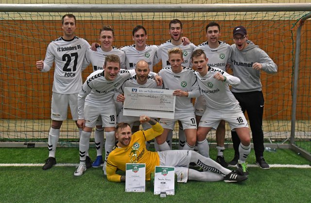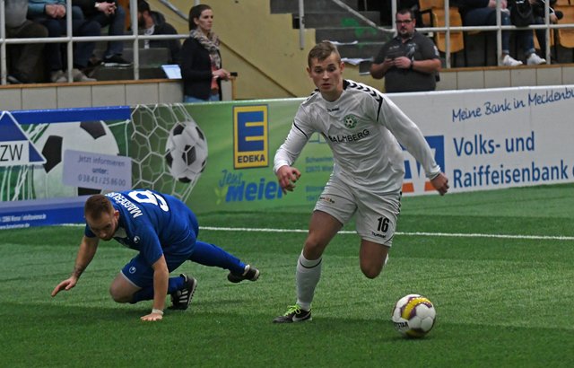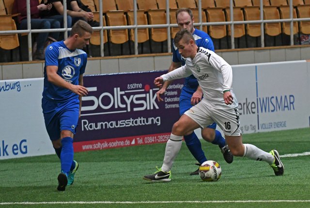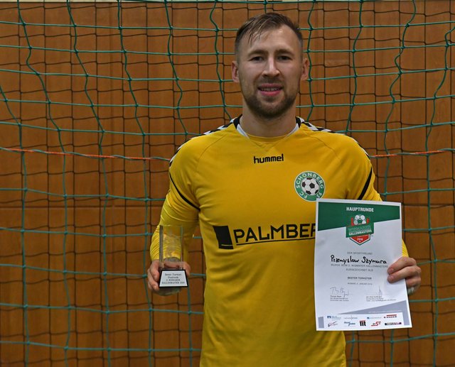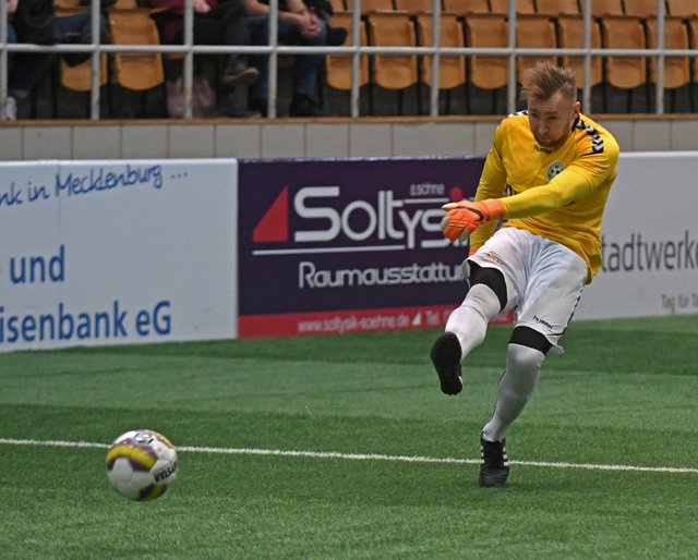 Beim vom PSV Wismar und vom FC Anker Wismar gemeinsam organisierten Hallenmasters sicherte sich unsere 1. Männermannschaft heute einen beachtlichen 2. Platz. Przemyslaw Szymura wurde zudem zum besten Torwart des Turniers gewählt. Im Finale gegen den FC Anker Wismar konnte Schönberg lange Zeit die von Marcel Nagel bereits in der ersten Minute aus extrem spitzem Winkel erzielte Führung behaupten. Erst in den letzten beiden Minuten setzte sich der Oberligist doch noch durch.