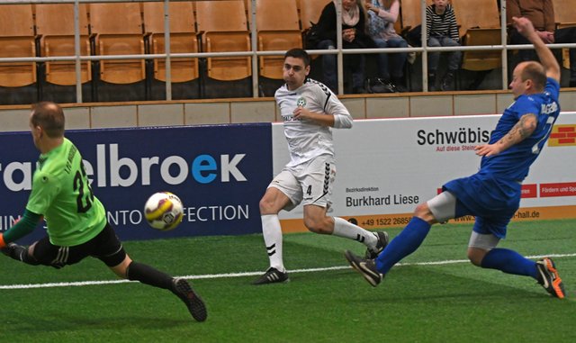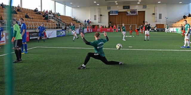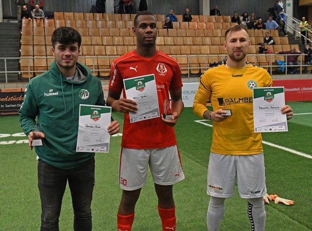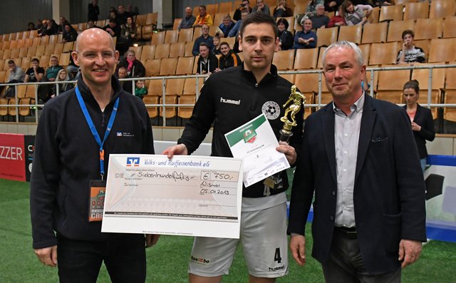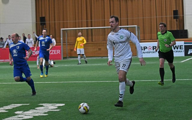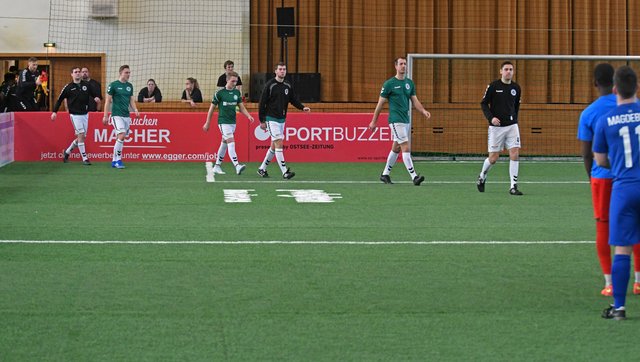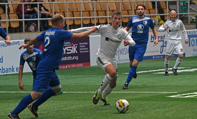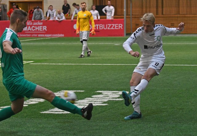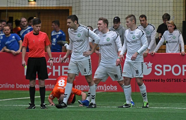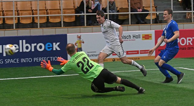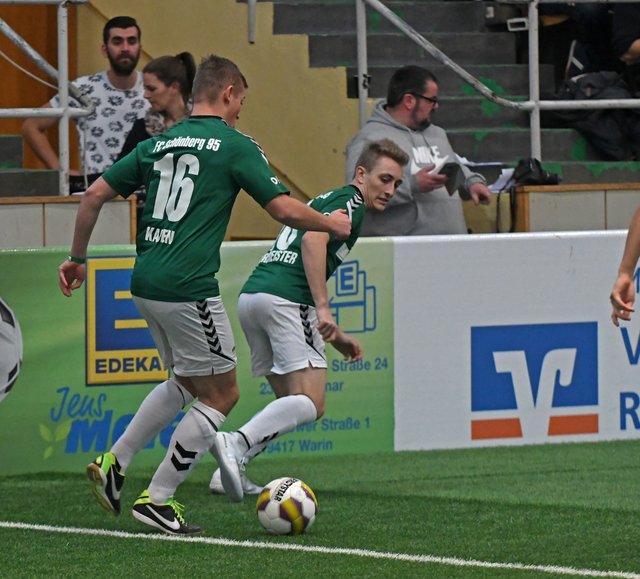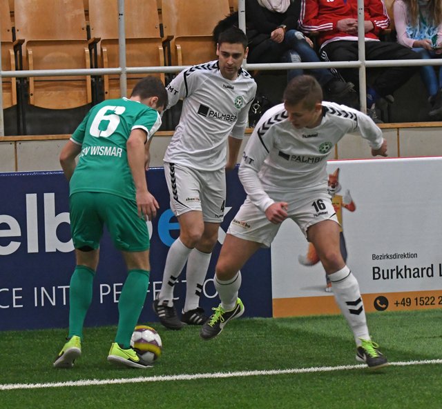 Beim vom PSV Wismar und vom FC Anker Wismar gemeinsam organisierten Hallenmasters sicherte sich unsere 1. Männermannschaft heute einen beachtlichen 2. Platz. Przemyslaw Szymura wurde zudem zum besten Torwart des Turniers gewählt. Im Finale gegen den FC Anker Wismar konnte Schönberg lange Zeit die von Marcel Nagel bereits in der ersten Minute aus extrem spitzem Winkel erzielte Führung behaupten. Erst in den letzten beiden Minuten setzte sich der Oberligist doch noch durch.