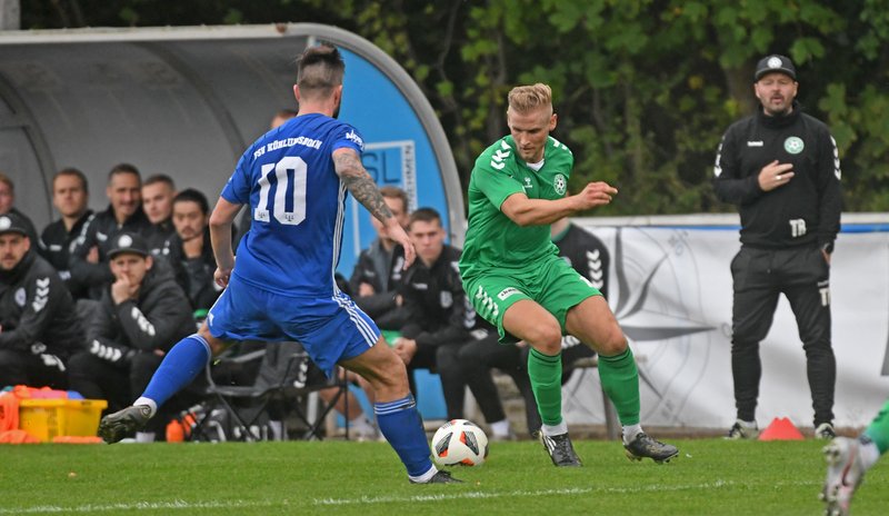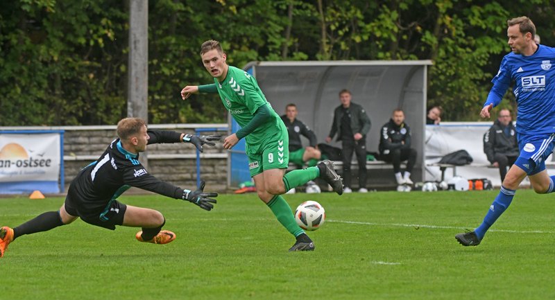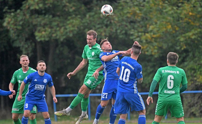 Es passierte wenig im ersten Durchgang. Der FSV Kühlungsborn hatte optisch mehr vom Spiel, kam dabei aber bis auf einen Schuss von Max Schröder nach einer Viertelstunde kaum gefährlich vor das gegnerische Tor. Und Schönbergs Torwart Kilian Dankert war damit nicht in Verlegenheit zu bringen, denn die Kugel flog ihm genau in die Arme.