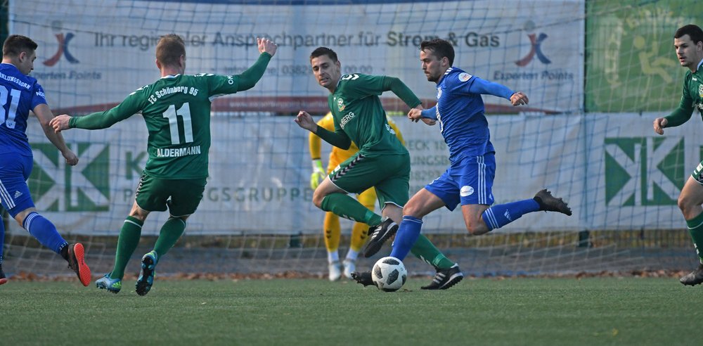 FC Schönberg 95: Przemyslaw Szymura, Simon Leu, Erik Schameitke, Marvin Miltzow, Marvin Worreschck, Marcel-Sven Meier (31. Finn Lukas Burmeister), Furkan Kalfa, Thomas Aldermann, Andreas Gomig (67. Felix Kaben), Marcel Nagel (86. Marcel Behm), Daniel Halke