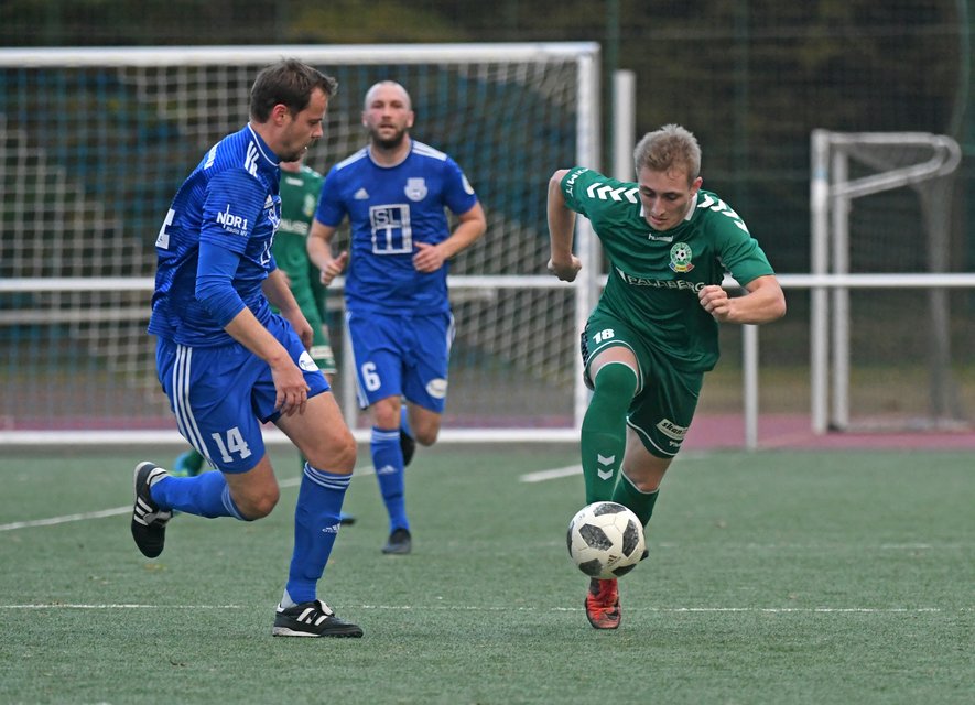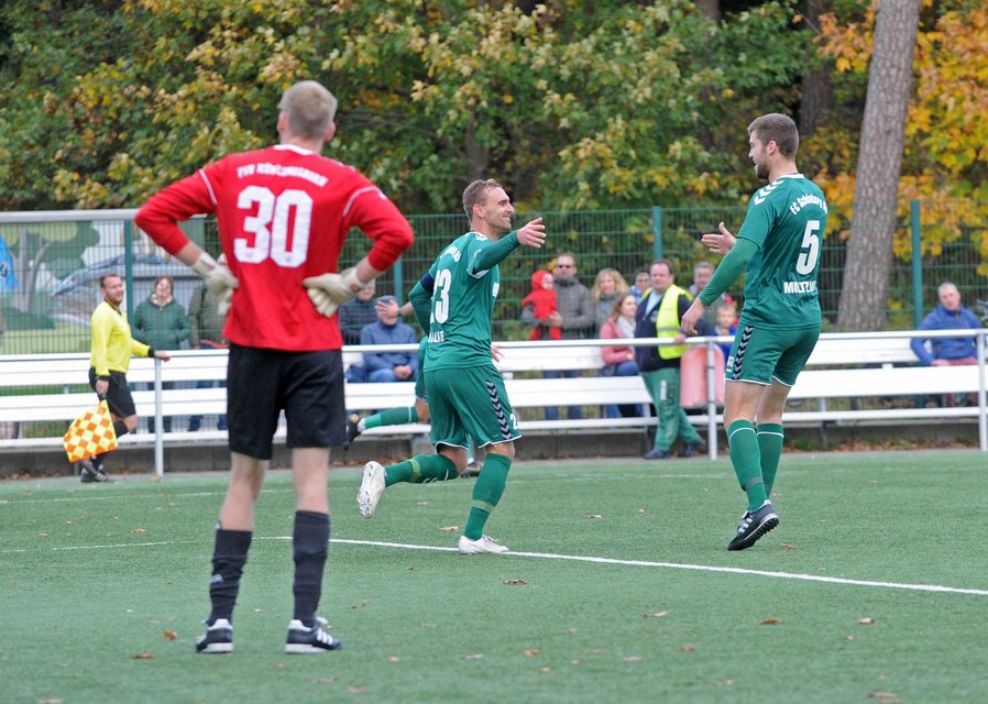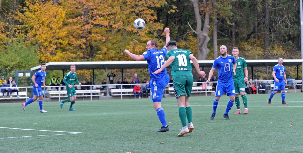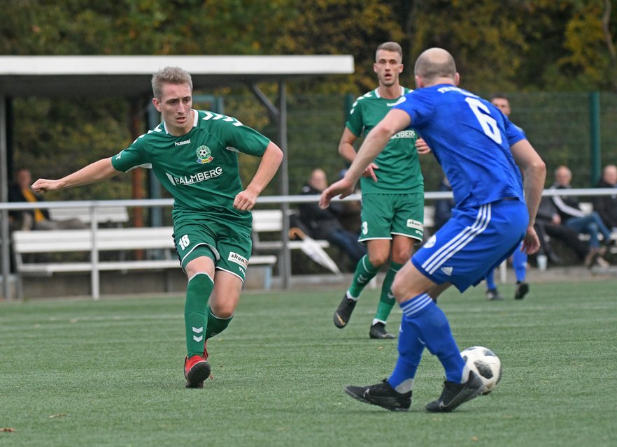 In einer ausgeglichenen ersten Halbzeit kam es nur selten zu Torraumszenen. Beide Mannschaften zeigten großen Einsatz, kämpften um jeden Ball und damit spielte sich das intensive Geschehen vorwiegend zwischen den Strafräumen ab. Als dann aber Erik Schameitke bei einer Flanke von Andreas Gomig ausnahmsweise mal keinen Gegenspieler hatte, nutzte er diesen Freiraum um sich die Ecke ganz genau auszugucken und die Grün-Weißen mit einem unhaltbaren Distanzschuss in Führung zu bringen. Noch vor der Pause glichen die Platzherren verdientermaßen aus – Tobias Hagedorn köpfte eine verlängerte Ecke gegen den Innenpfosten und von dort sprang die Kugel in Netz.
