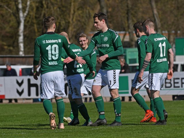 FC Schönberg 95: Przemyslaw Szymura, Marvin Miltzow, Hannes Komoss, Hendrik Schröter, Nick Heymann (65. Stefano Ricchiuti), Thomas Aldermann, Finn Lukas Burmeister (60. Chris Kowalski), Marcel Nagel, Marvin Worreschck, Timo Poch, David Rosinski (76. Sebastian Burmeister)