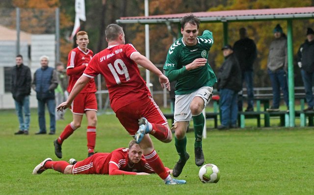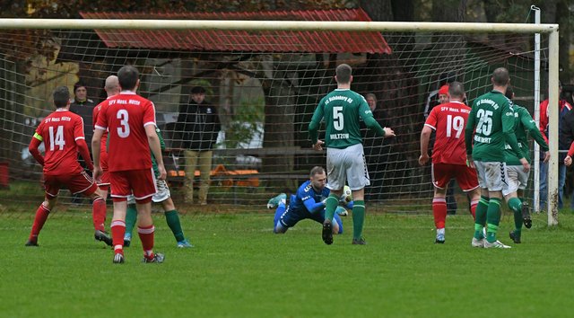 Nach der Pause kamen die Nordwestmecklenburger besser ins Spiel und bei einem starken Konter über Nick Heymann segelte ein Volleyschuss von Marcel Behm nur knapp am Pfosten vorbei. Ungemein wichtig war das zweite Tor der Grün-Weißen, das Hannes Komoss nach guter Vorarbeit von Marcel Behm erzielte. Der Torjäger ließ Nils Nowak mit einer schnellen Drehung ins Leere schliddern und bei seinem Schlenzer ins lange Eck war Paul-Friedrich Kornfeld erneut machtlos. Der SFV Nossentiner Hütte gab sich dennoch nicht geschlagen und holte sich nach 2 weiteren Großchancen durch den freistehenden Björn Rupprich den Anschlusstreffer. Damit wurde die letzte Viertelstunde noch einmal so richtig spannend, aber der FC Schönberg 95 konnte den knappen Vorsprung letztlich sicher über die Zeit bringen.