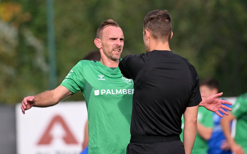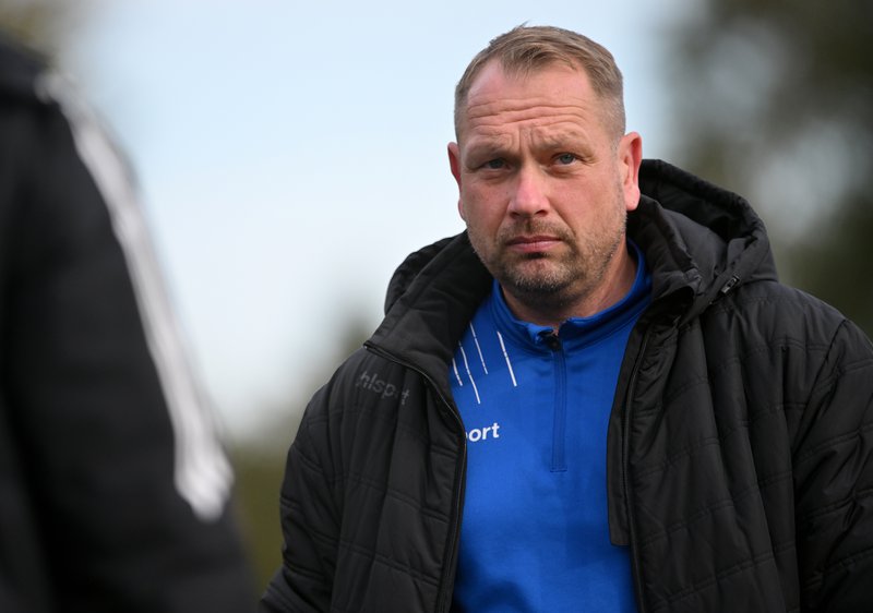 Gäste-Trainer Enrico Neitzel (hat mal 100 Tore für Schönberg geschossen)