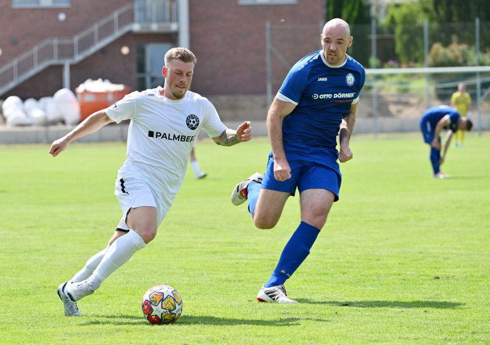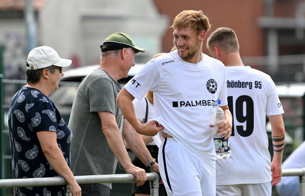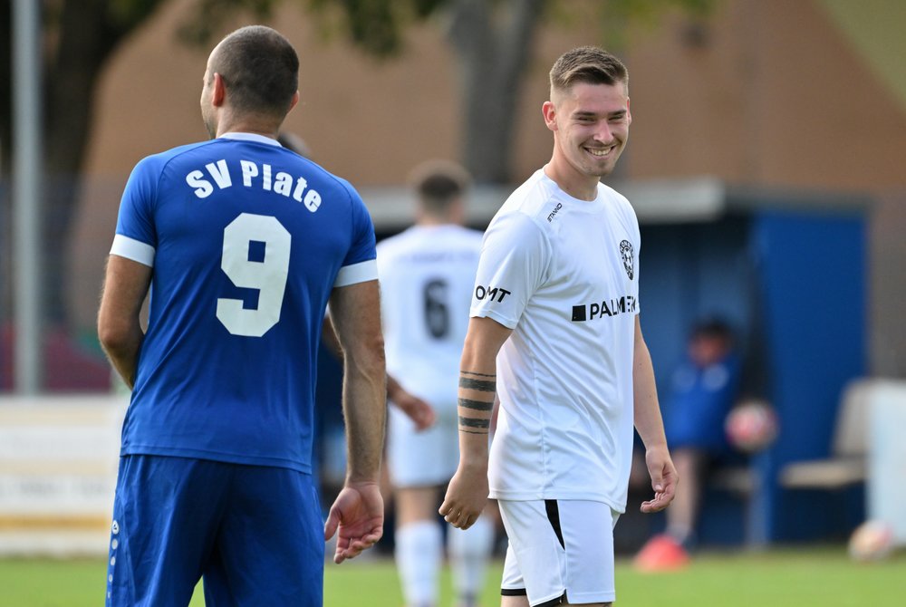 Bei viel zu viel Sonne und viel zu wenig Wind, also bei tropischer Hitze, gewann der FC Schönberg 95 sein erstes Vorbereitungsspiel beim SV Plate mit 7:1. Der Sieg war auch in dieser Höhe völlig verdient und sorgte nach dem Abpfiff für erschöpfte, aber zufriedene Gesichter bei den Maurine-Kickern. Salyvan Schmidt war der erste Torschütze der neuen Saison und mit Philipp Mellmann und Felix Groth trugen sich gleich 2 Neuzugänge in die Torschützenliste ein. Letzterer traf nach seiner Einwechselung sogar dreimal innerhalb einer guten Viertelstunde. Trainer Norbert Somodi hatte dementsprechend nur sehr wenige Kritikpunkte und wollte auch das Gegentor, das sich im Spielverlauf nicht angedeutet hatte, nicht überbewerten. Am Mittwoch geht’s mit dem 2. Vorbereitungsspiel gegen die 2. Vertretung von Phönix Lübeck weiter.